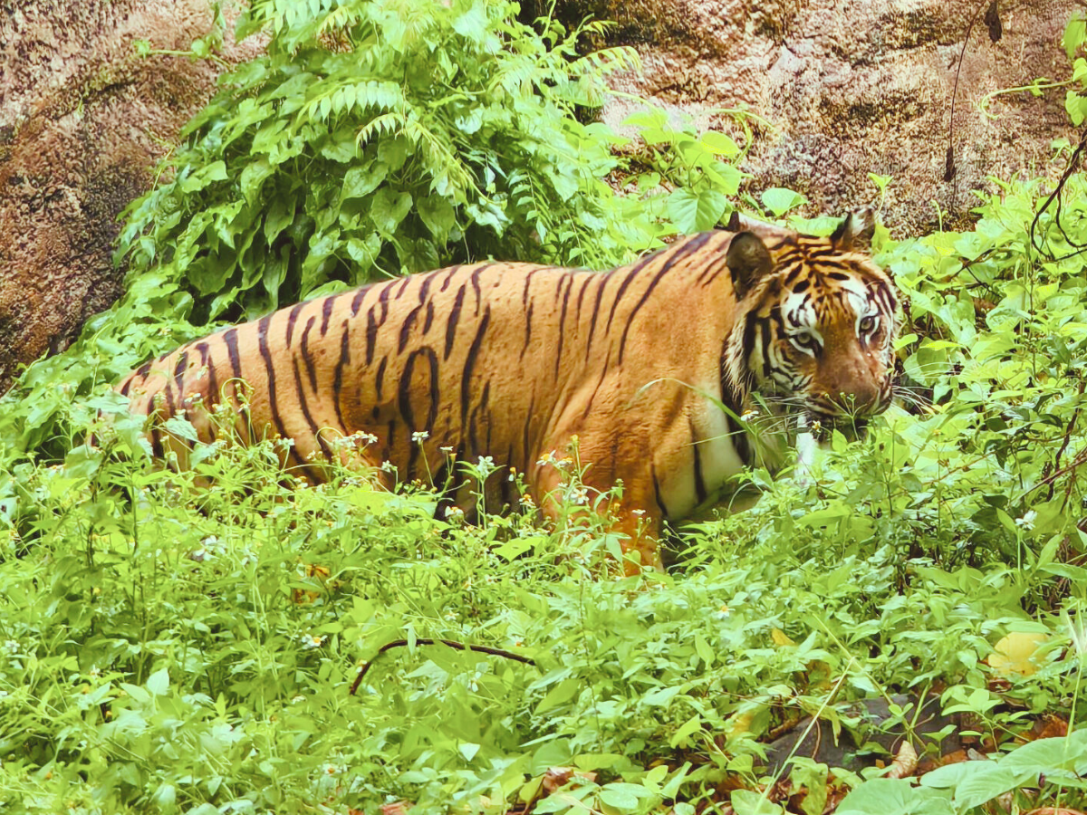 ( 來自六福村的孟加拉虎「二妞」探索展場環境 圖/高雄市觀光局提供 )