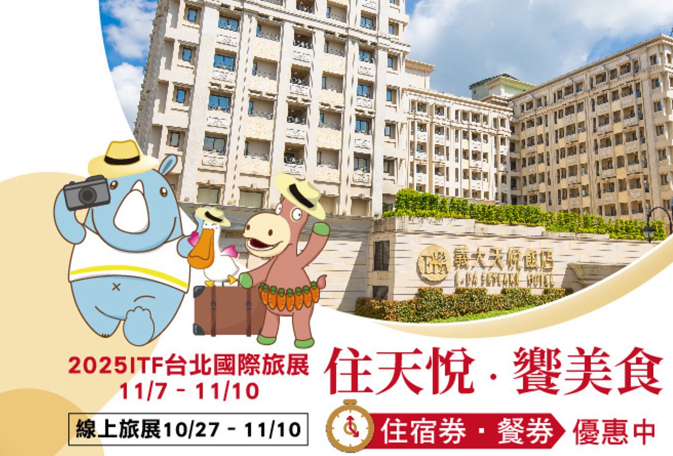 另外配合2025台北國際旅展將於11月7日至10日盛大登場,義大天悅飯店除了至台北南港產覽館參展外。