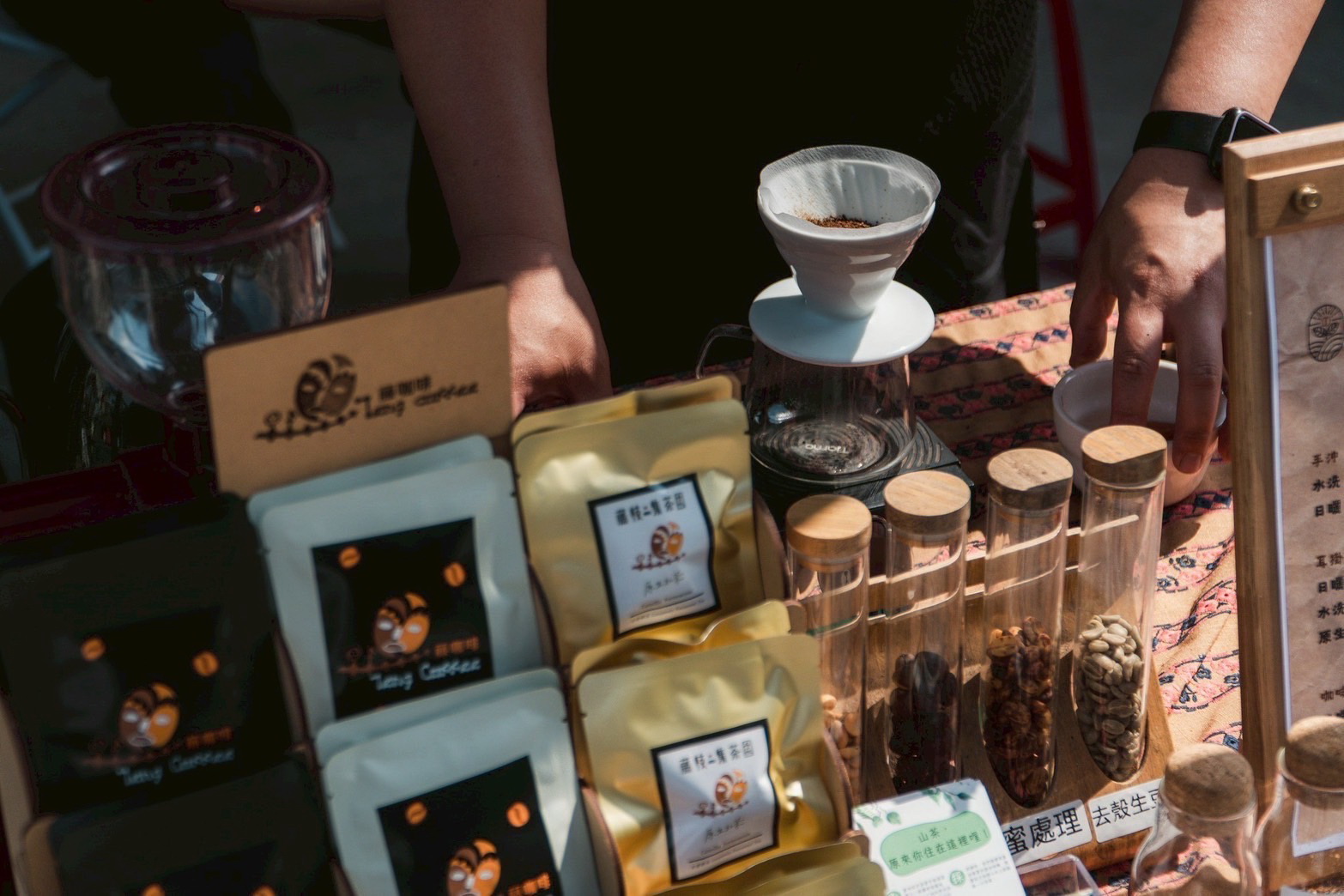 藤咖啡、山清有魚及珍康普茶等,展售原山孕育的咖啡。