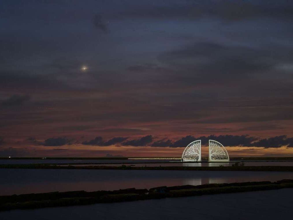 「大魚的祝福」正是源於這樣的理念,他將大魚形象比喻成守護島嶼的力量,提醒人們彼此包容、珍視土地。而「生命之樹」則象徵鹽田中的生命韌性,透過朝聖般的步行動線,鼓勵人們在自我沉澱中找回方向。