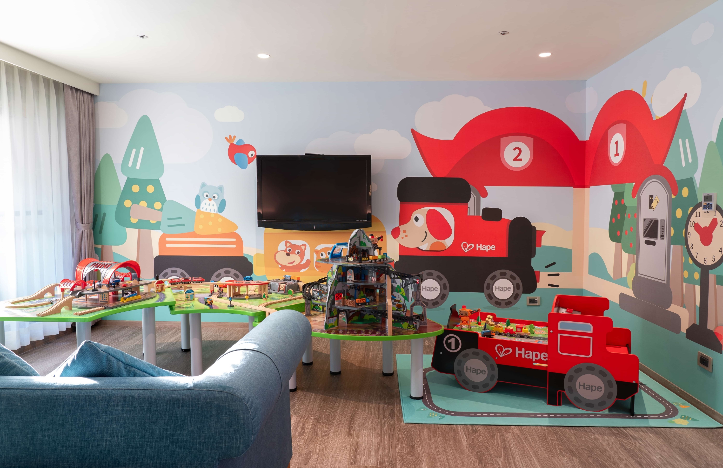 親子住宿自帶遊戲室和各種玩具的Hape親子主題房(隨機主題),2大2小每晚7,999元起。