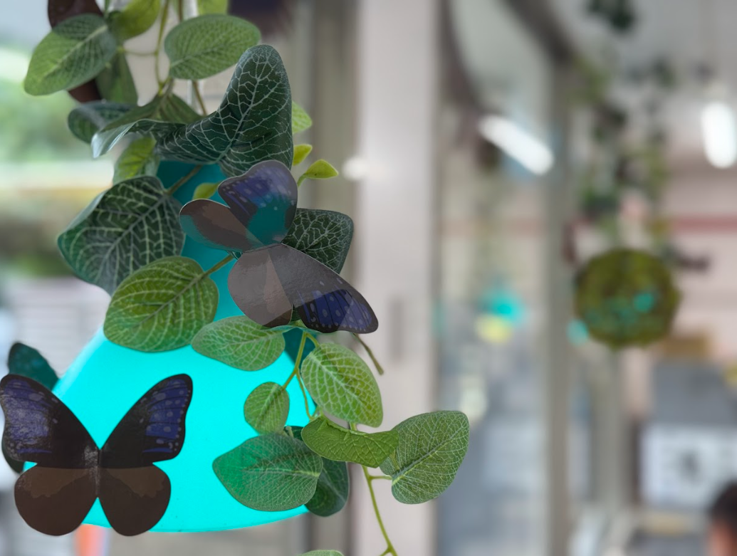 ( 7-ELEVEN室內懸掛紫斑蝶佈置 圖/茂管處提供 )