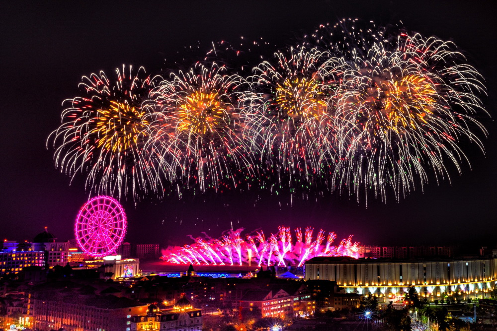 還有「五彩瀑布煙火」、「千輪小花」、「變光煙火」等特色煙花,氣勢磅礡又繽紛,而999秒煙火秀創舉可不只這些。