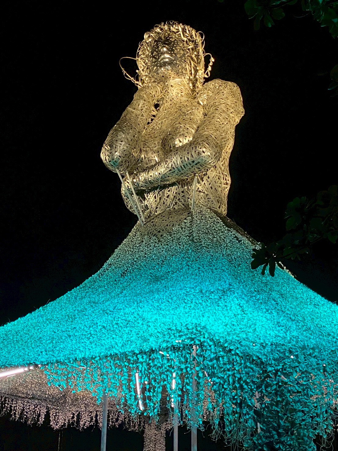 「海之女神」最初於 2019 年台灣燈會亮相,是全台第一座以 35 萬顆蚵殼打造、高達 15 公尺 的大型裝置藝術。