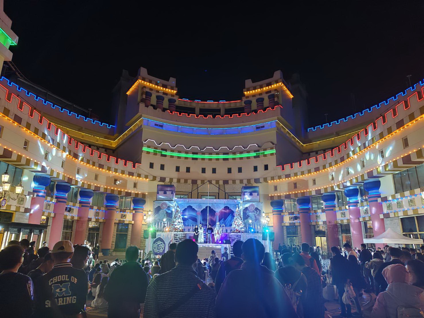 即使當天是上班日,晚間八點前園區已湧入約 15,000 名遊客。