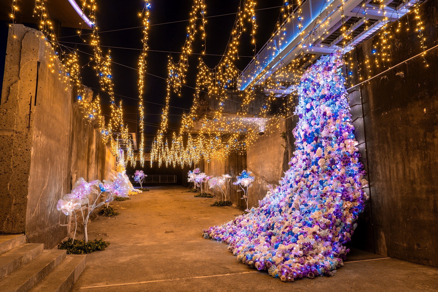 今年燈區除延續去年四大場域,其中,萬年溪燈區更將步伐跨至萬倉街台鐵橋下廊道,期待透過各具風貌的燈飾。