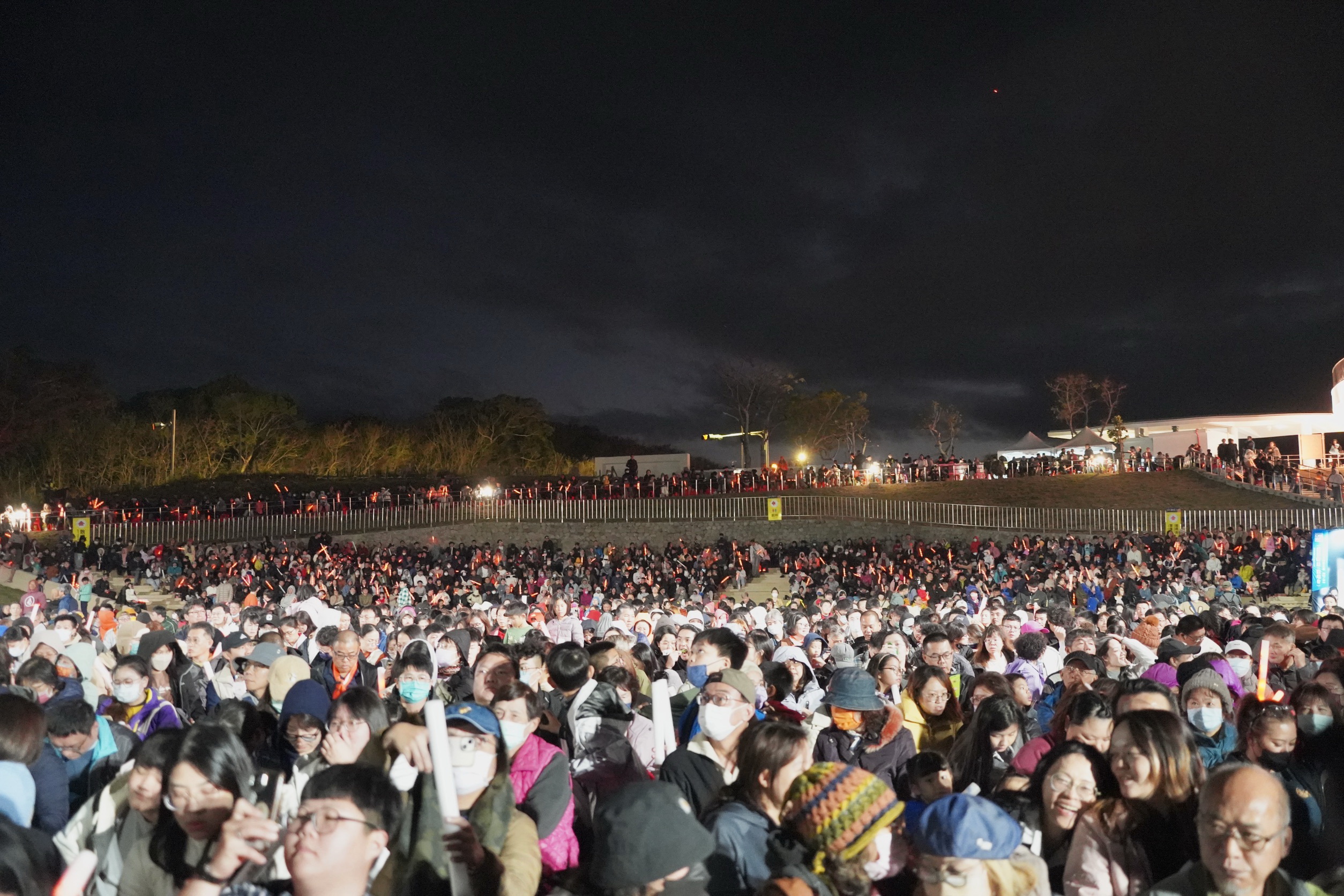 園區自下午起陸續湧入人潮,隨著夜幕降臨,在周縣長、各界代表與滿場觀眾見證下。