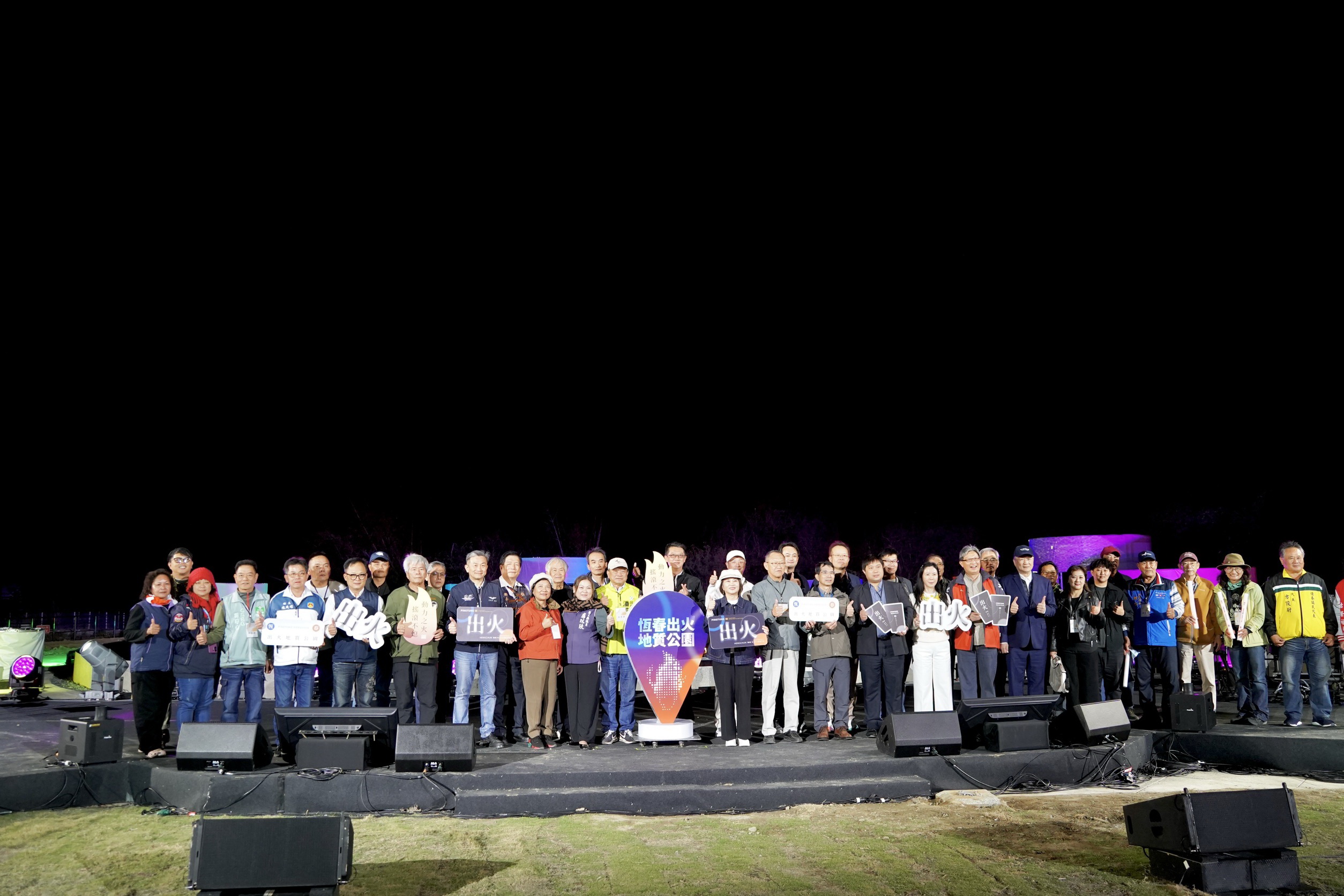共同宣布「恆春出火地質公園」正式啟用,在自然火光、環形水域與音樂交織的氛圍中。