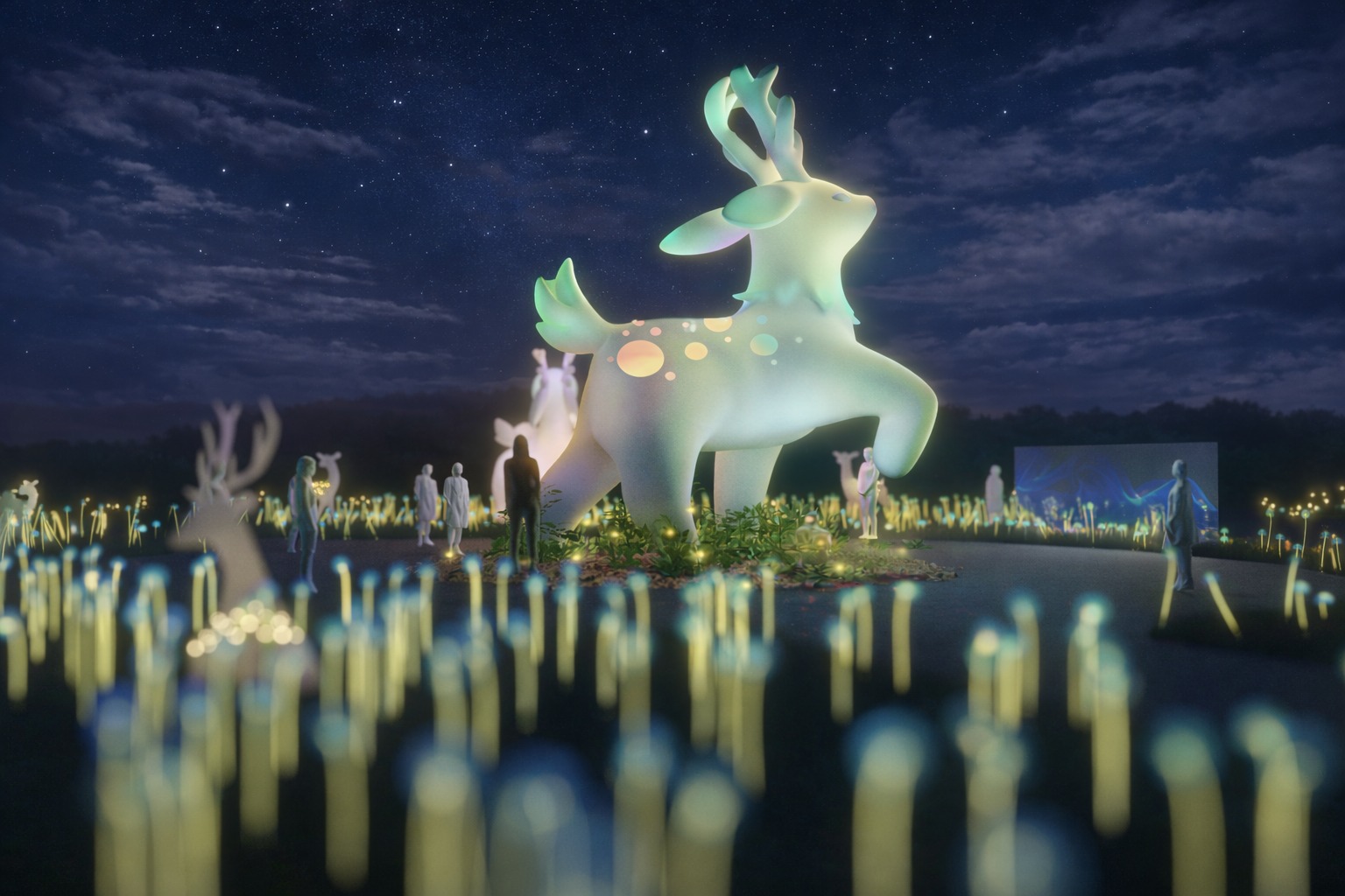 在這片光的森林裡,來自嘉義山林的重要夥伴——梅花鹿,化身為引路的主角,帶領旅人一步步靠近傳說的核心。