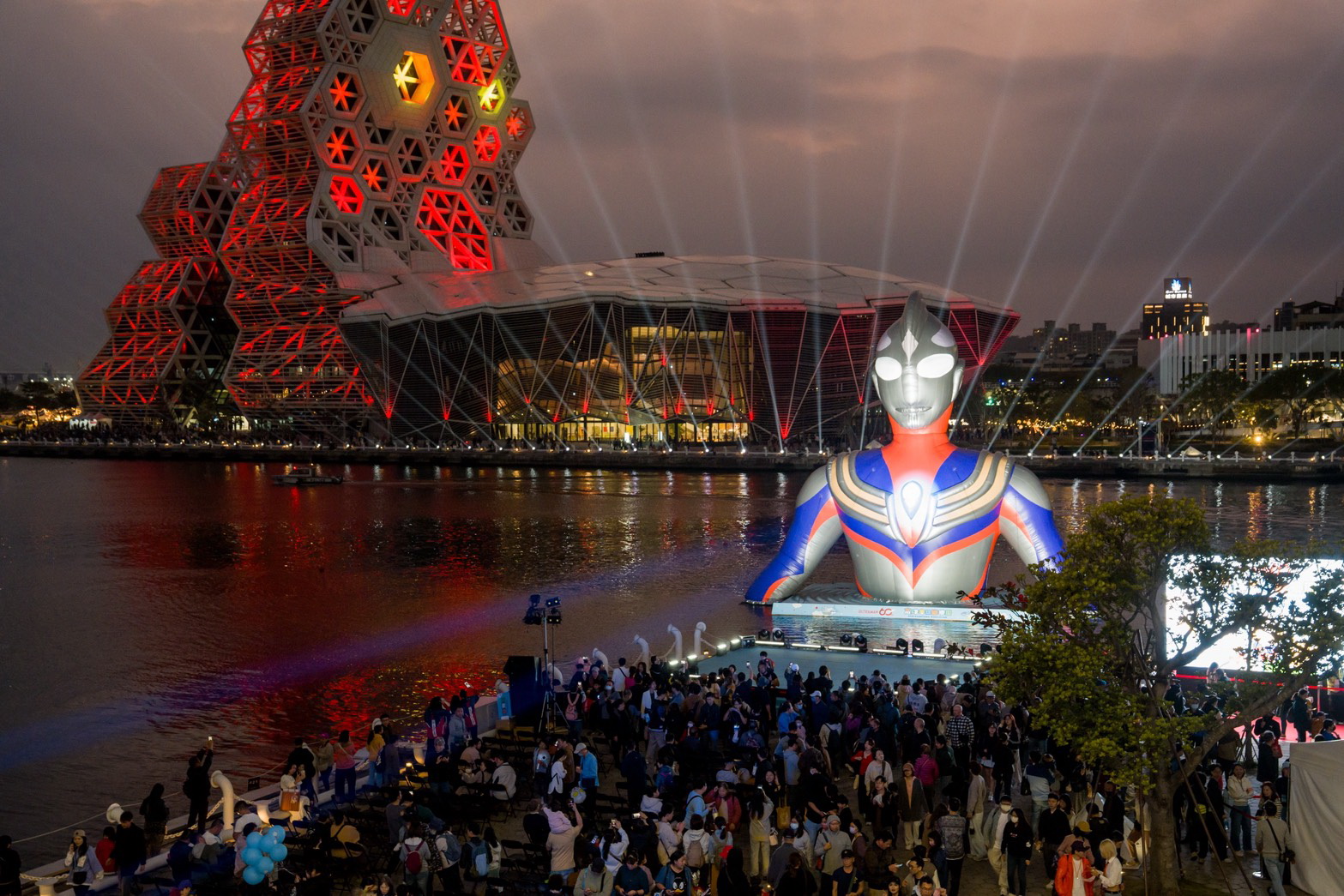 ( 超人力霸王「超馬吉」燈光秀展演 圖/高雄市觀光局提供 )