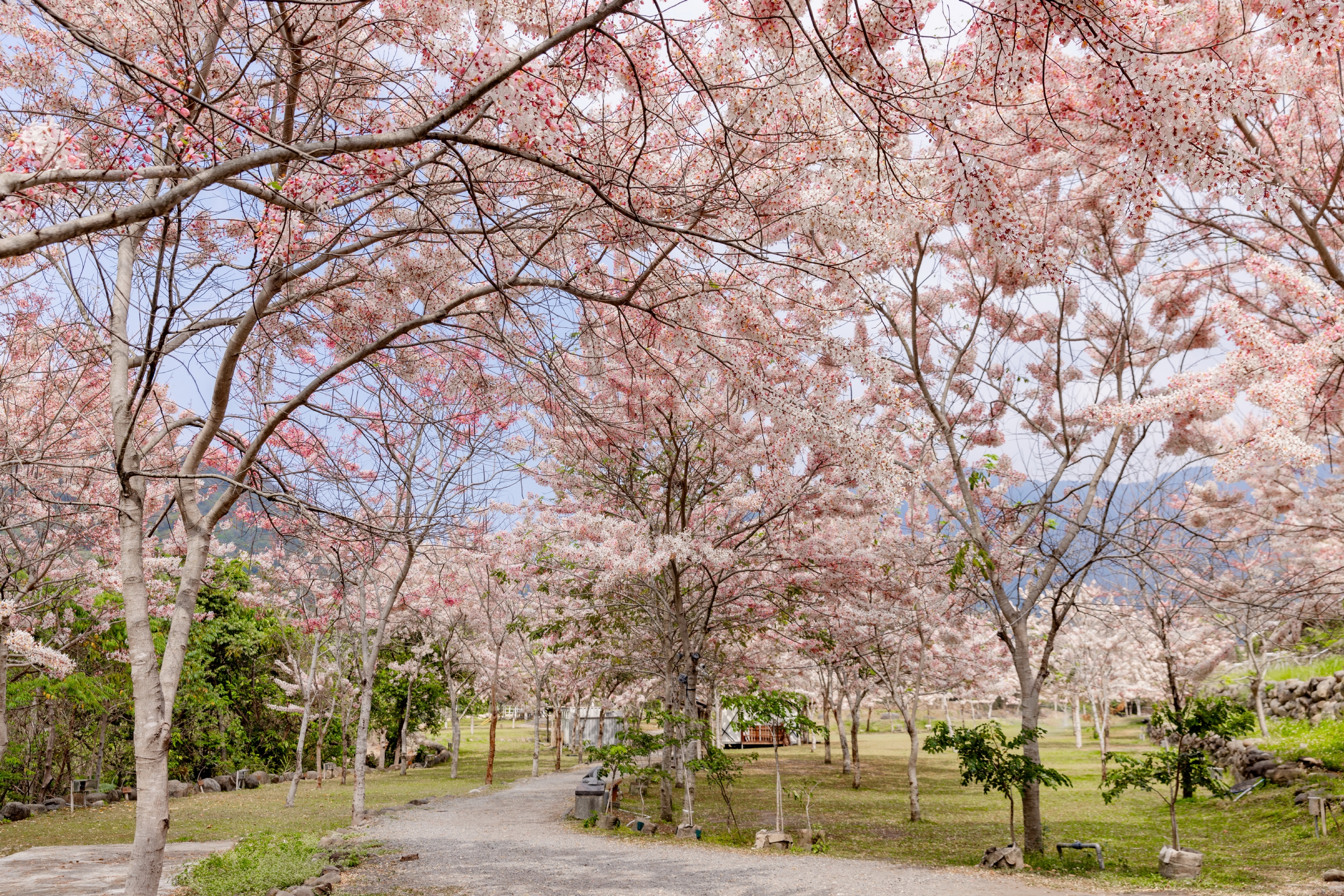 此時正值春暖花開,沿著台27線及台27甲線展開的「粉紅隧道」花旗木美不勝收。