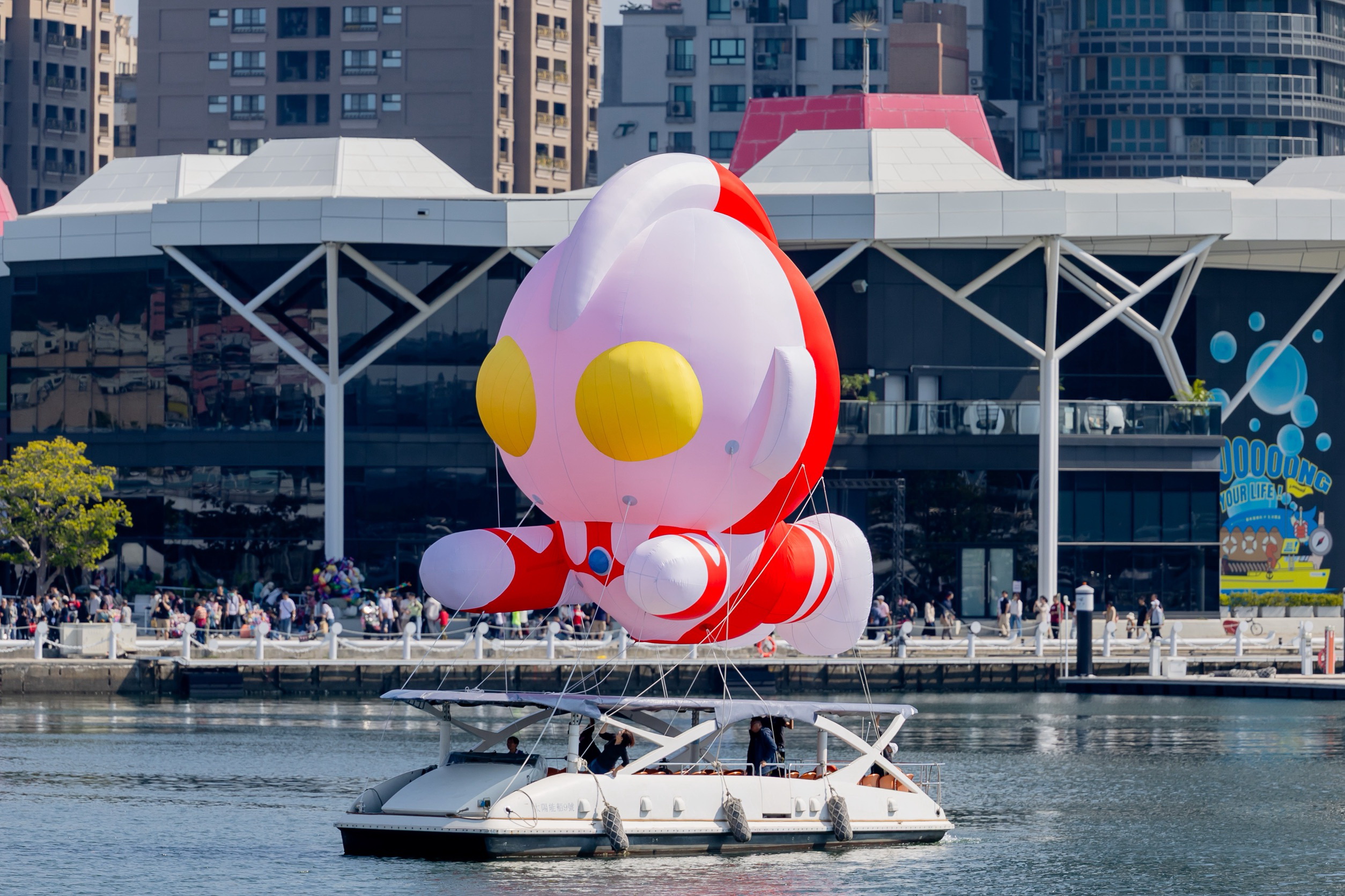 ( 高雄冬日遊樂園彩蛋8米Q版初代超人力霸王活動期間將不定期領航愛河灣 圖/高雄市觀光局提供 )