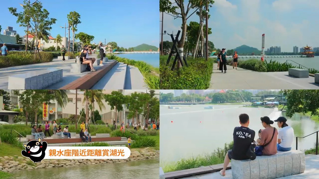 不僅全面更新南側步道,更增設三處親水座階,讓遊客近距離欣賞龍虎塔與湖光水色、日夜景致。