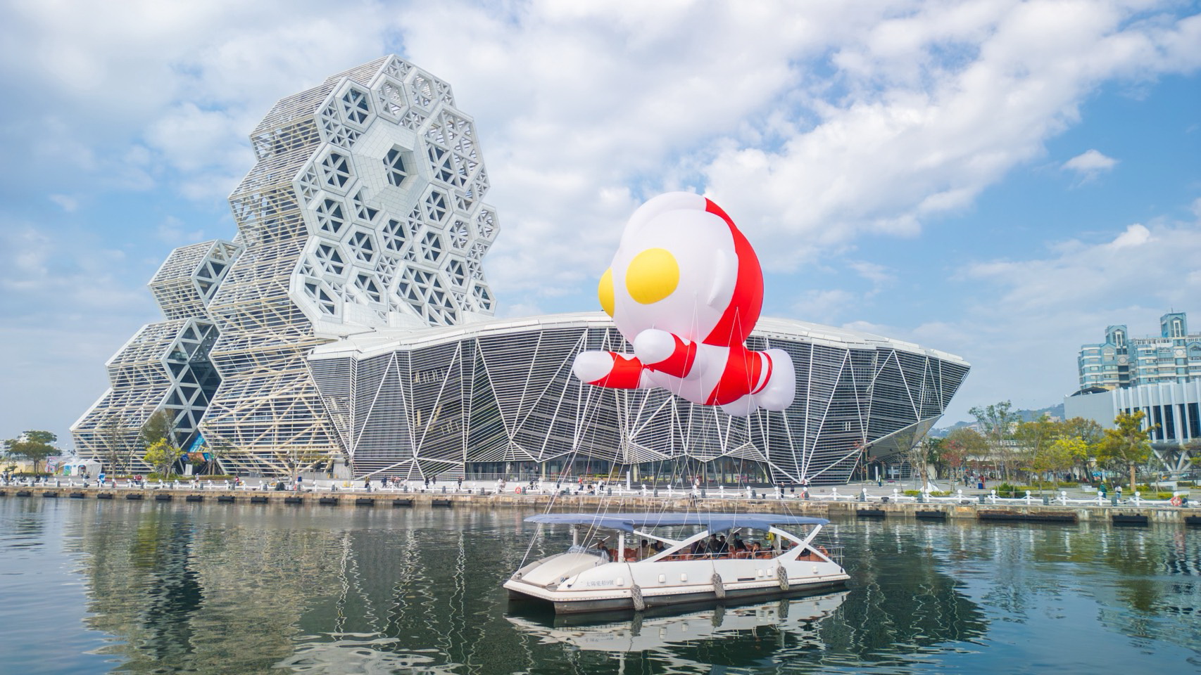 ( 受到民眾喜愛的8米Q版超人力霸王將視天候狀況於愛河灣巡航 圖/高雄市觀光局提供 )