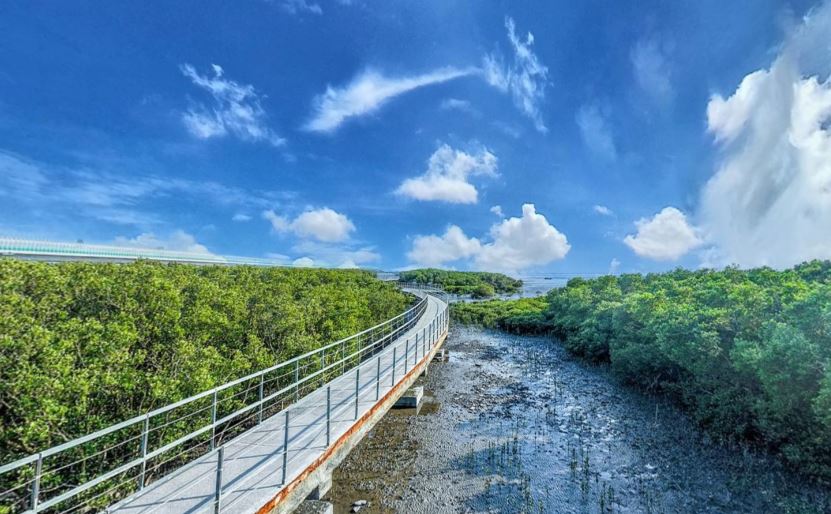 除了城市景點外,本次沉浸式平台也加入彰化海線特色場景,包括芳苑王功漁港、海空步道及海牛採蚵等在地文化景觀。