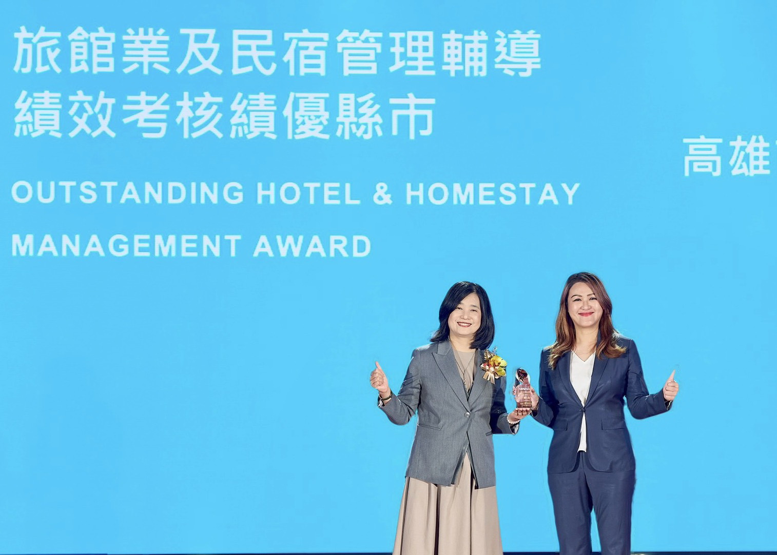 ( 高閔琳局長上台領旅宿業管理績效考核特優獎 圖/高雄市觀光局提供 )