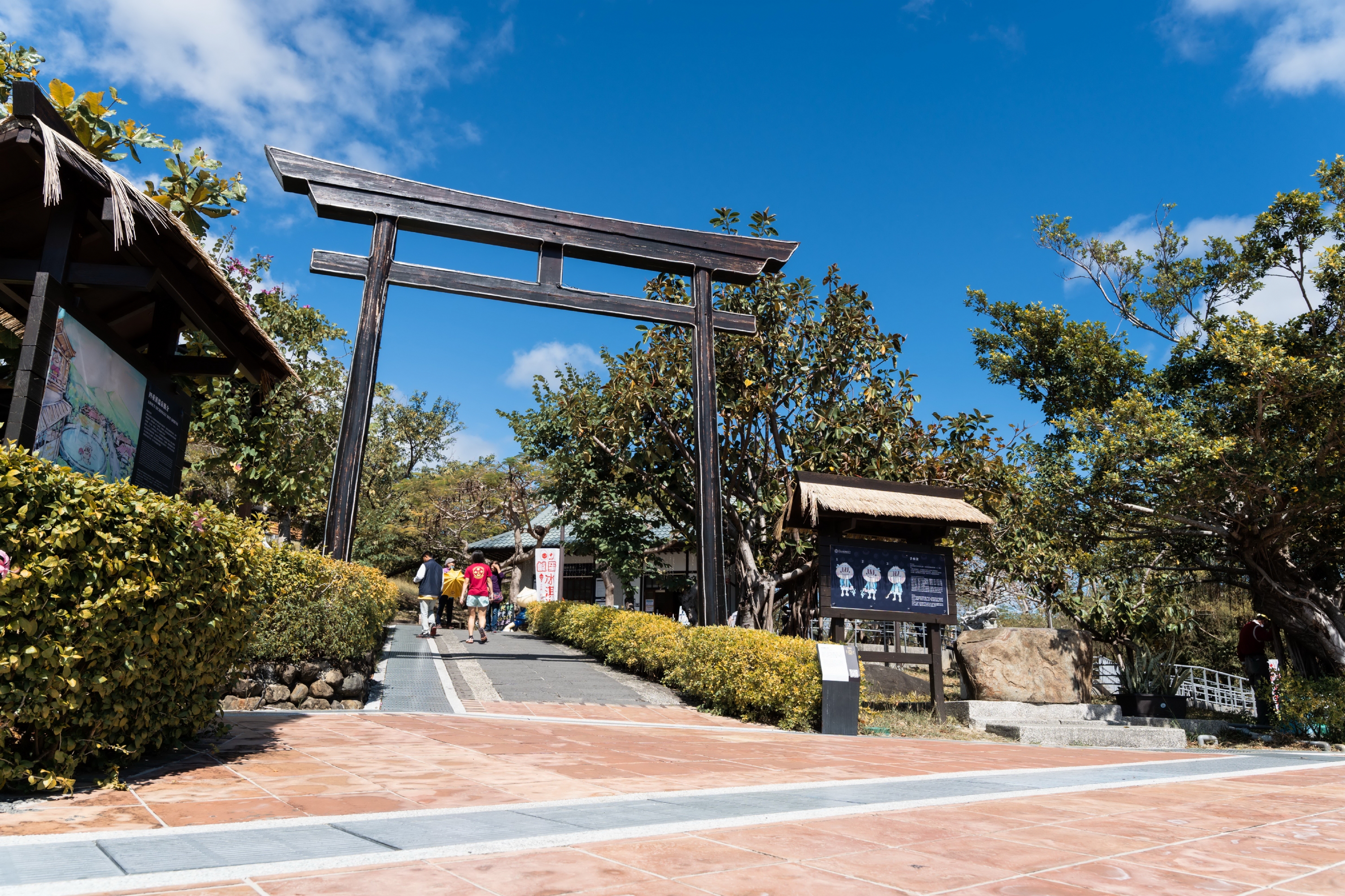 ( 漫步在充滿京都風情的四重溪溫泉公園,日式鳥居與木造長廊在春光下格外動人 圖/屏東縣政府交通旅遊處提供)