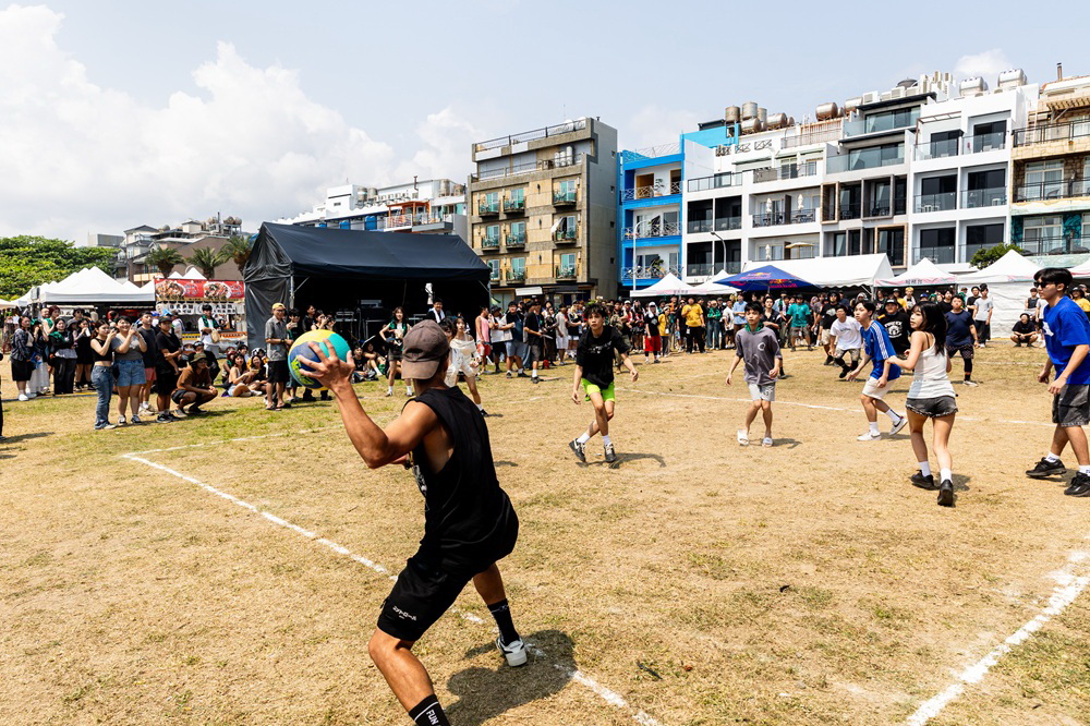 除了音樂演出外,下午大灣舞台區也展開熱血沸騰的「全明星躲避球賽」,今年共有16隊、128位好手在沙灘上激烈對抗。