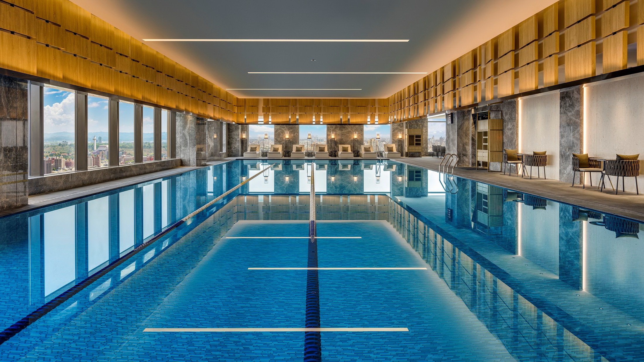 ( 住宿期間房客可免費使用寬敞舒適室內恆溫游泳池。圖/萬豪酒店提供 )