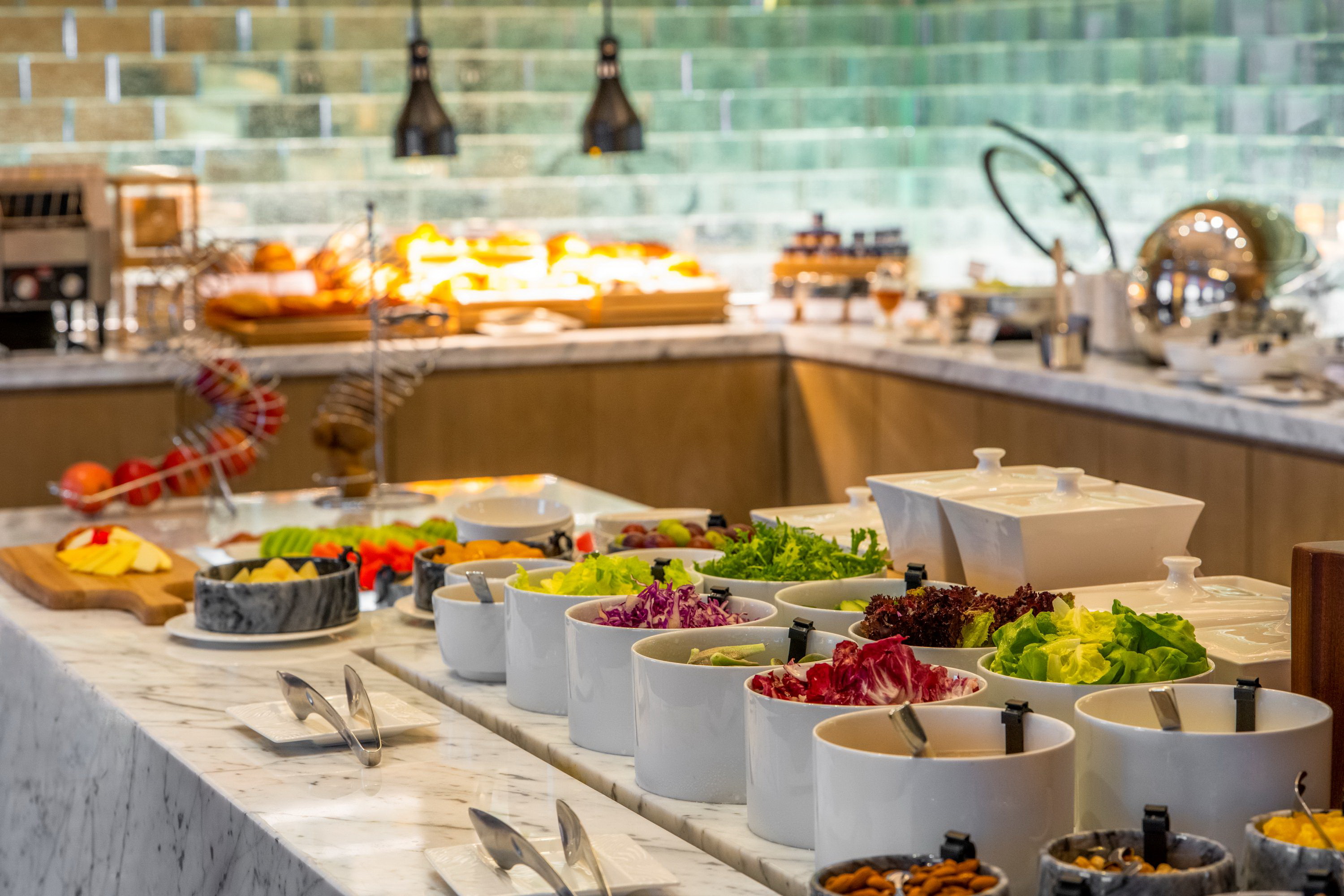(「京享蔬食百匯餐廳」台中國際旅展平日午晚餐券買十送二,平均每客715元,另加贈500元餐飲抵用券,回饋再升級。圖/萬豪酒店提供 )