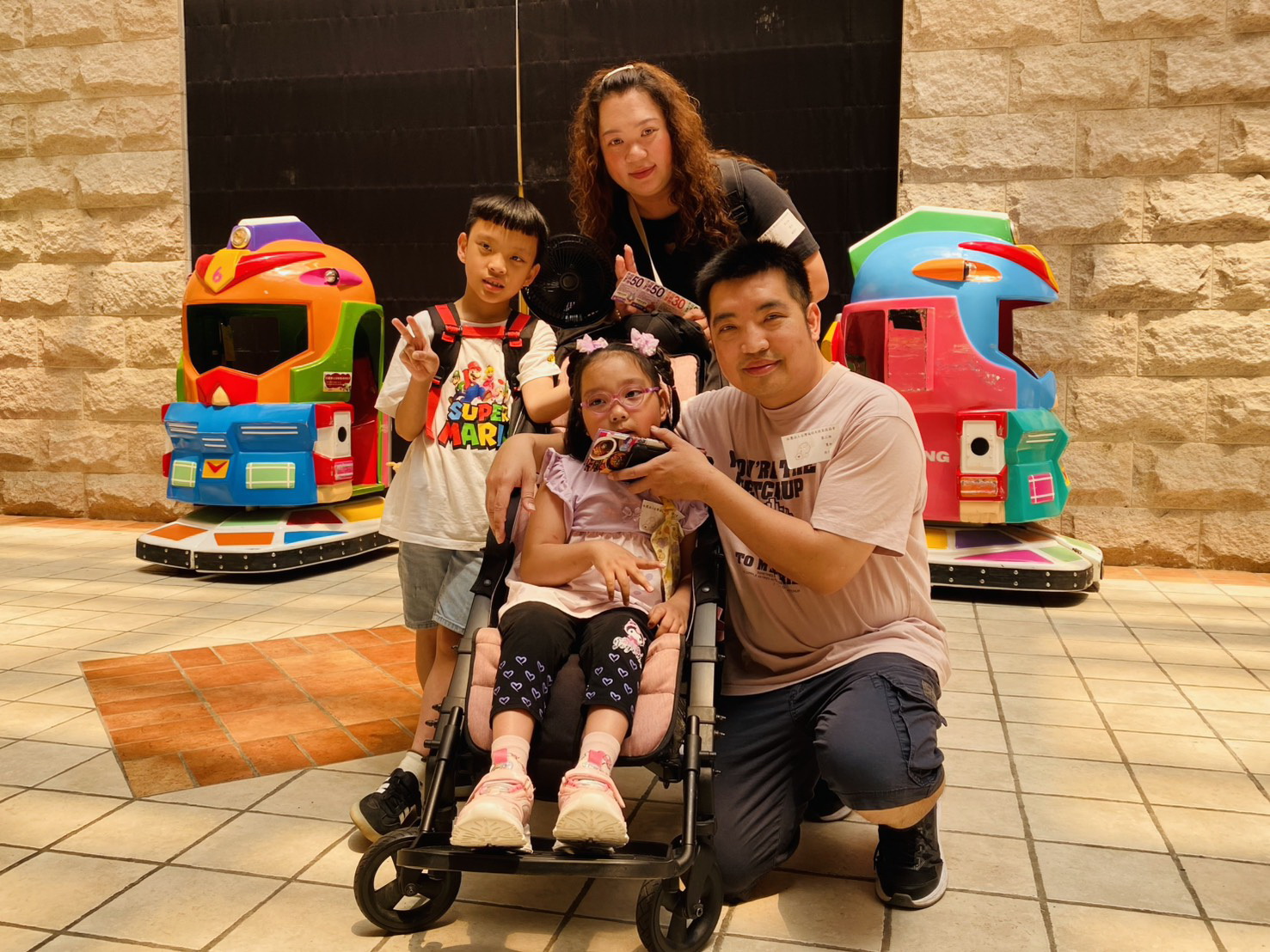 由於平日需安排才藝課程,一家人多半只能利用週日短暫出遊,這次透過協會安排來到樂園,對喬喬而言格外珍貴。