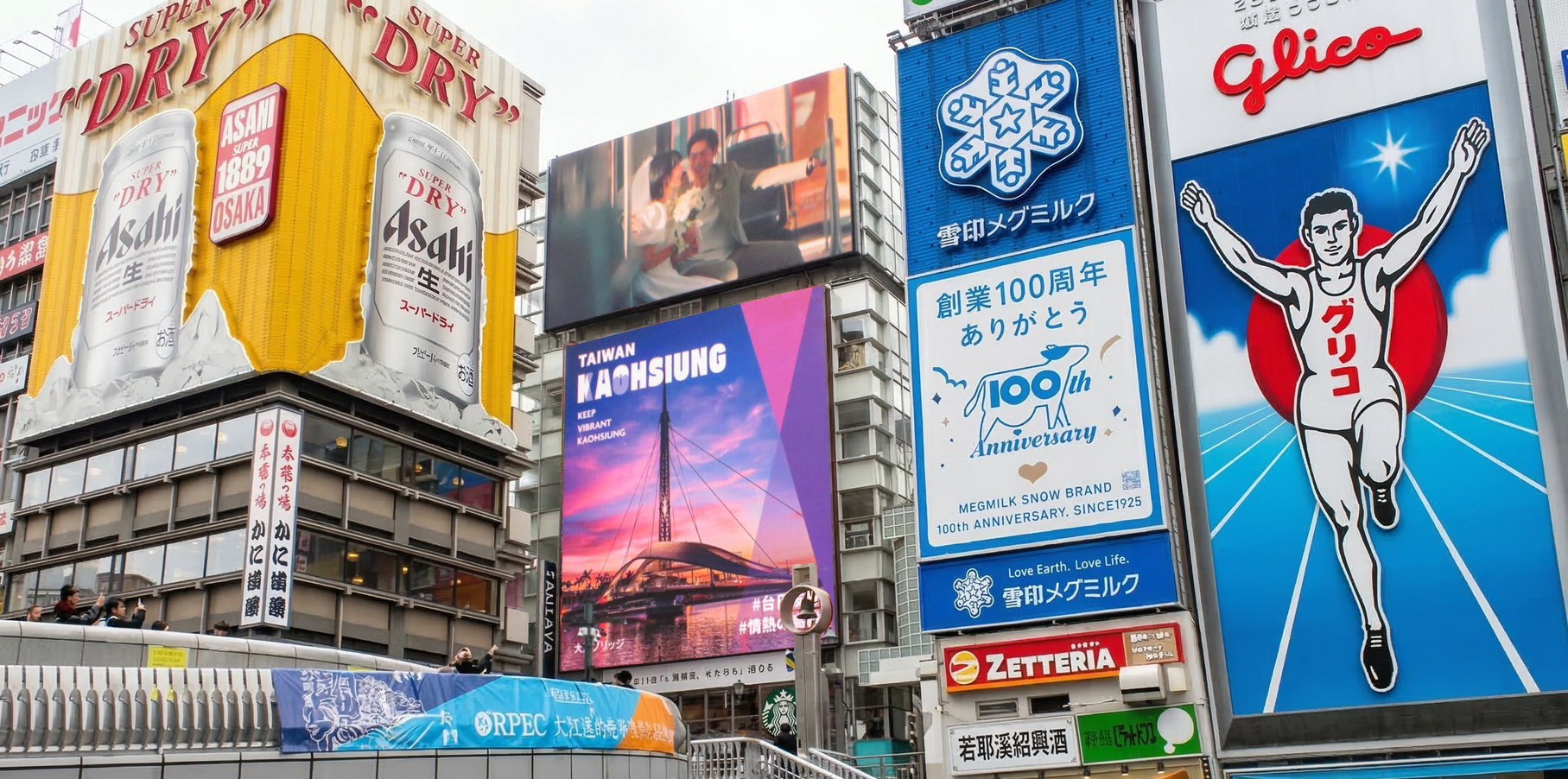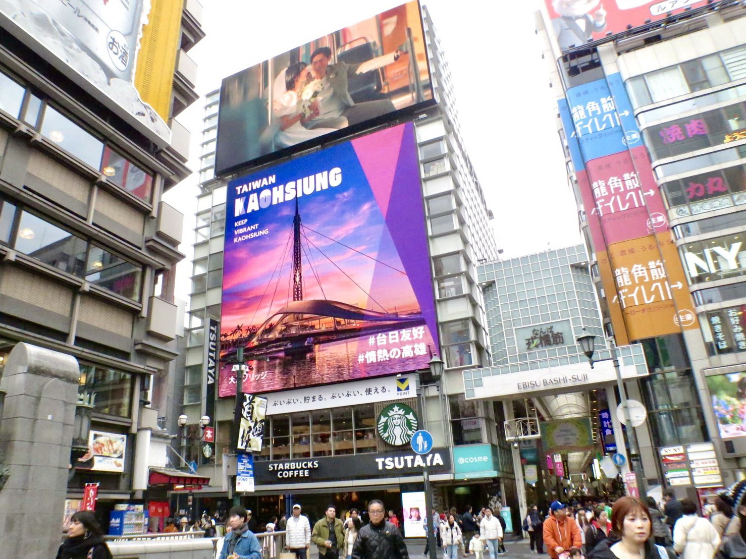 趁勝追擊,特別選定日本大阪觀光熱點「道頓堀」播映高雄觀光影片。