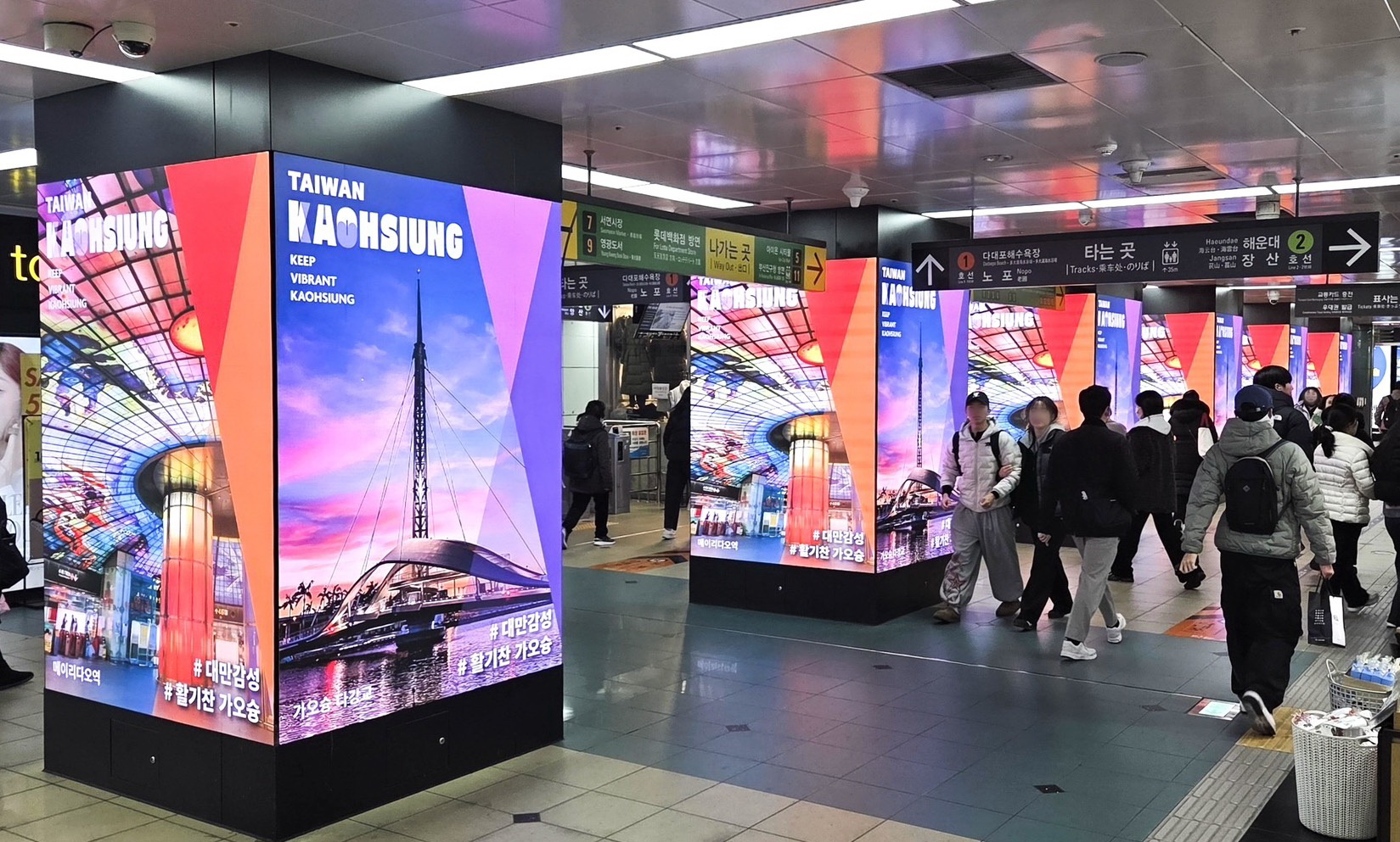 因此,今年二月選定於韓國釜山市中心最繁忙商圈與交通節點、核心轉乘樞紐—地鐵西面站播放。