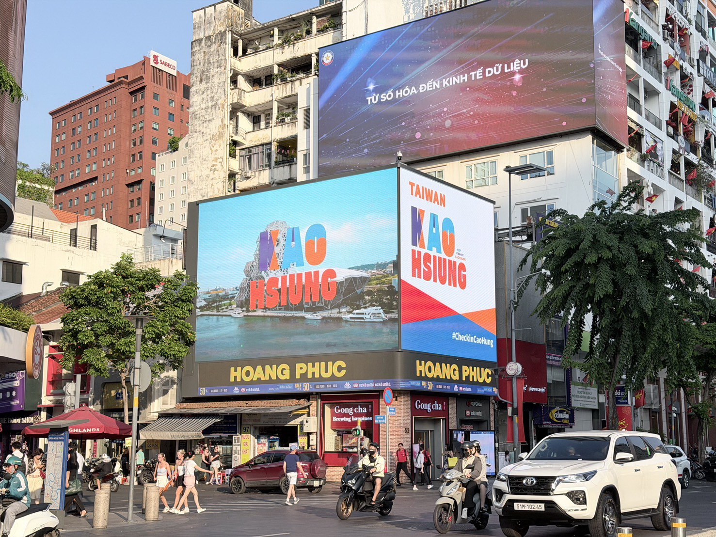 ( 高雄國際觀光形象廣告於越南胡志明市阮惠步行街播放 圖/高雄市觀光局提供 )
