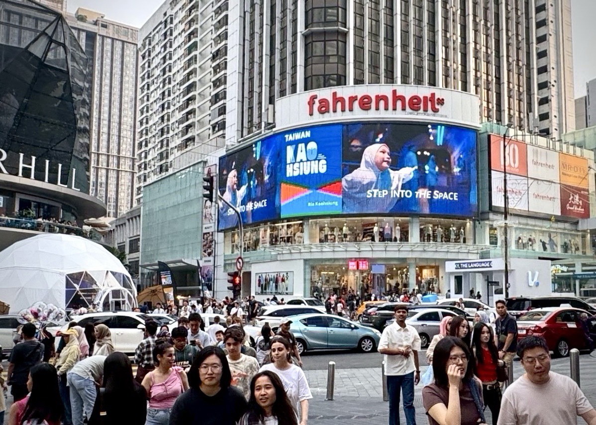 ( 高雄國際觀光形象廣告於馬來西亞吉隆坡Fahrenheit 88購物中心播放 圖/高雄市觀光局提供 )