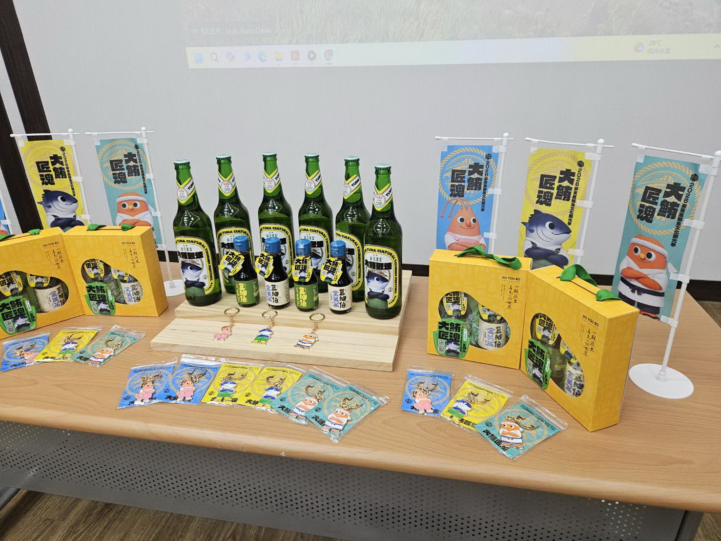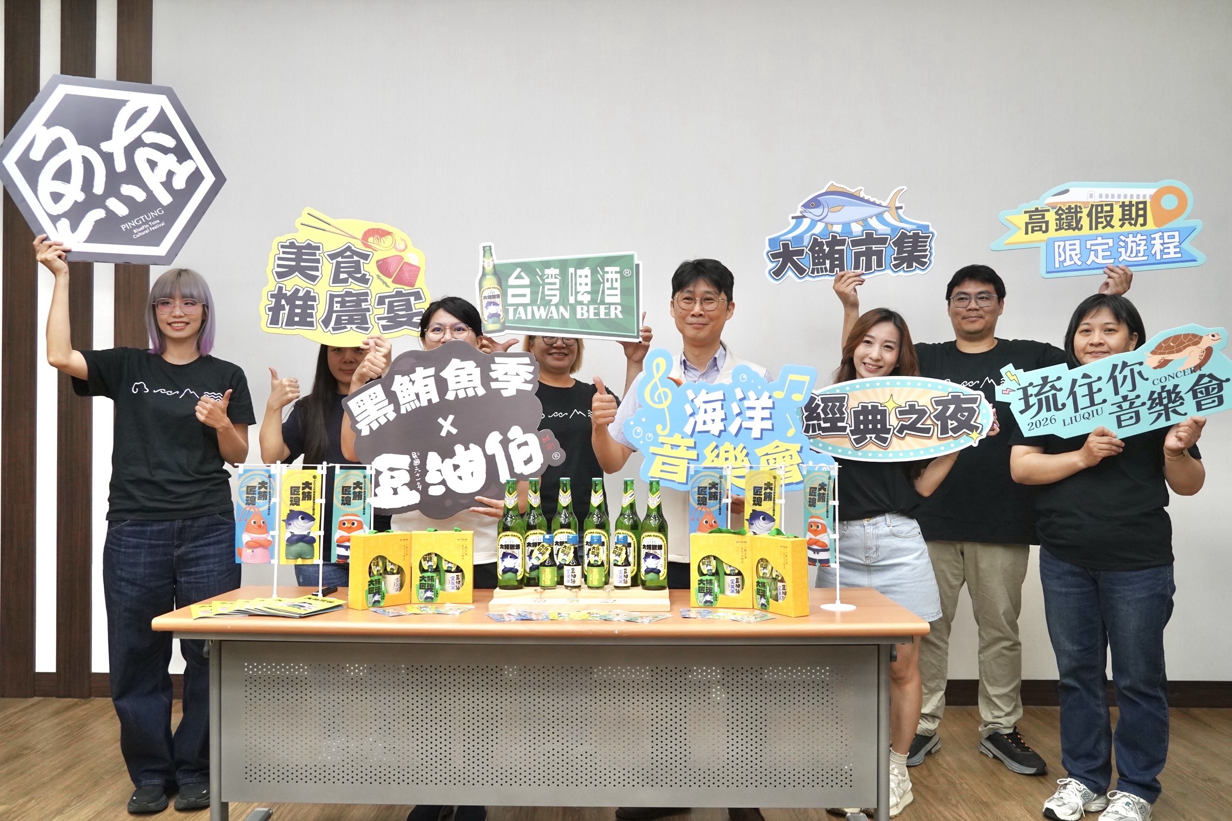 在產業合作方面,縣府團隊持續跨界整合資源,攜手台灣菸酒公司推出黑鮪魚季聯名金牌啤酒。