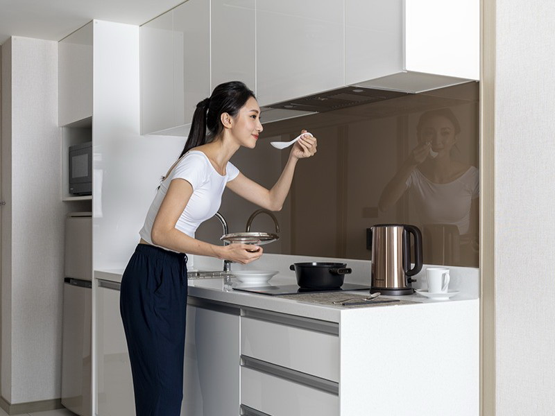 ( 瀚寓酒店每間房都配有簡易廚具,讓住客隨時都能準備簡易餐食,不受時間限制 圖/瀚寓酒店提供 )