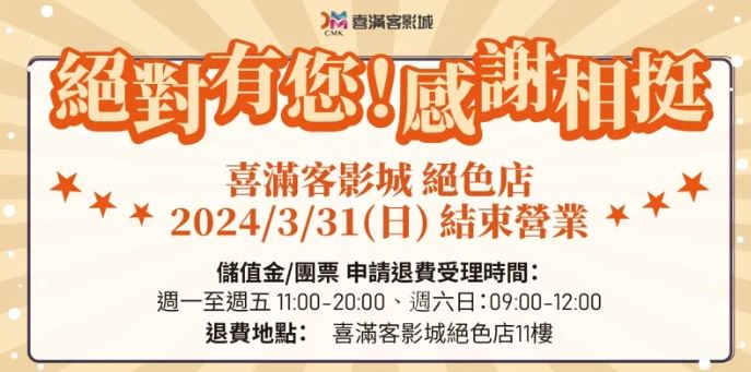 喜滿客絕色店在臉書公告中感謝影迷們在過去20多年的支持與陪伴,共同創造了許多美好回憶。