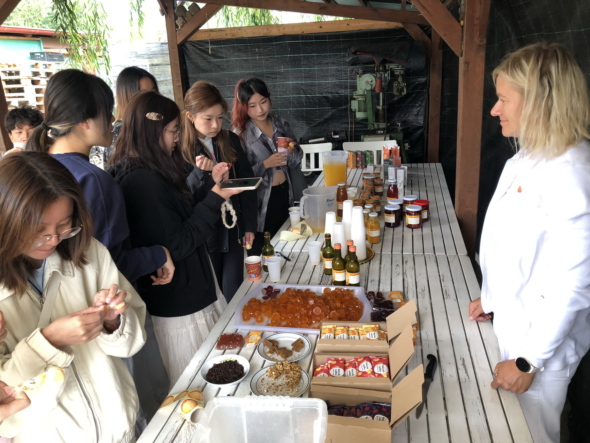 在教務長歐陽彥晶帶領下,師生參與三週語言與文化課程,上午上英文課,下午參加文化工作坊、運動及社交活動。