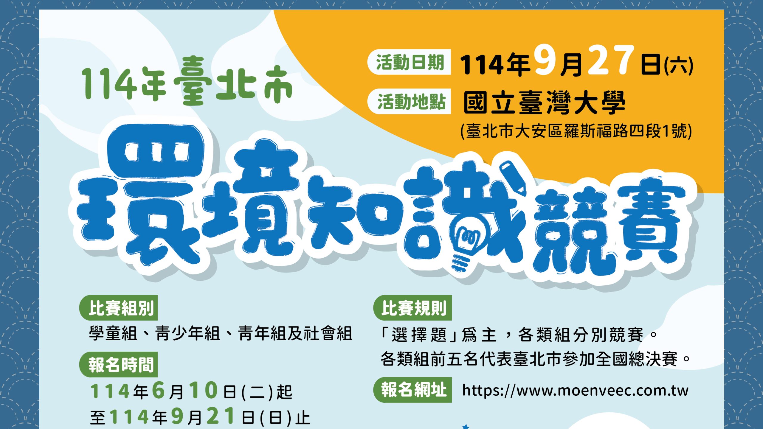 報名採線上方式,錄取名單將於 10月22日(星期三) 公布於「臺北市無圍牆環境教育博物館網站」」。