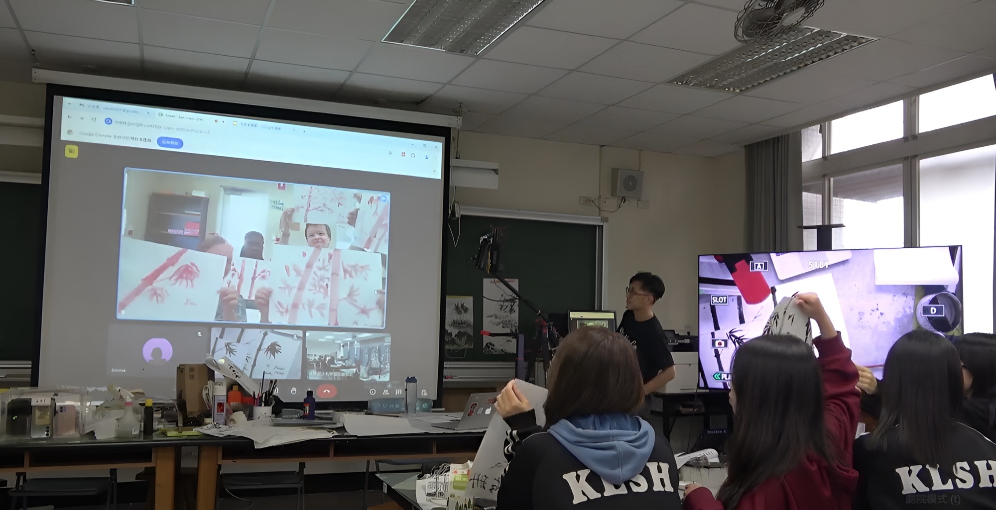 在基隆高中,學生與澳洲 Austin Cove Baptist College 共同展開「墨影山水」線上藝術課程。