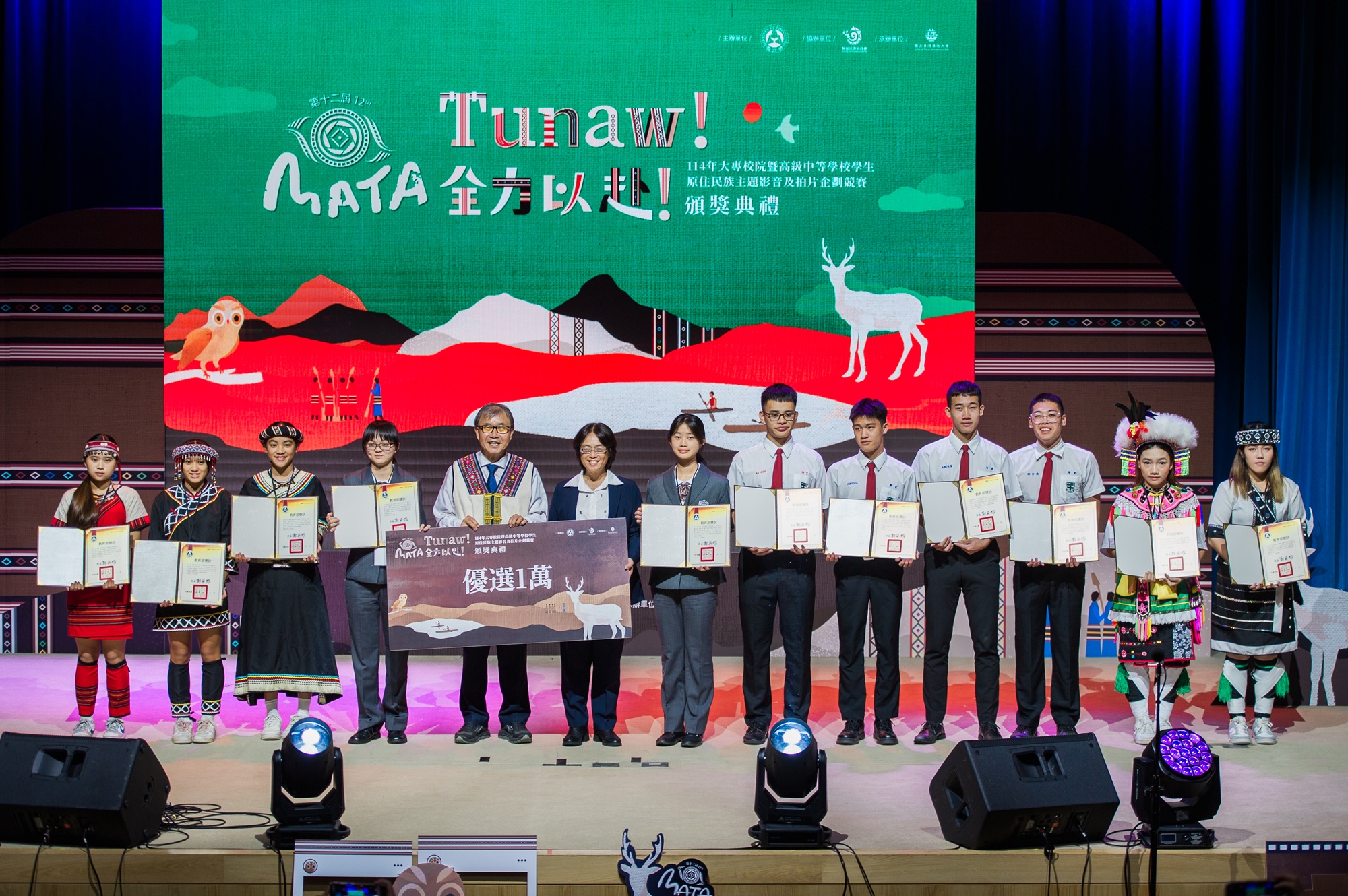 第12屆「MATA獎—大專校院暨高中職學生原住民族主題影音與拍片企劃競賽」頒獎典禮於(2)日在國家圖書館多功能展演廳溫馨舉行,由教育部長鄭英耀親自主持。