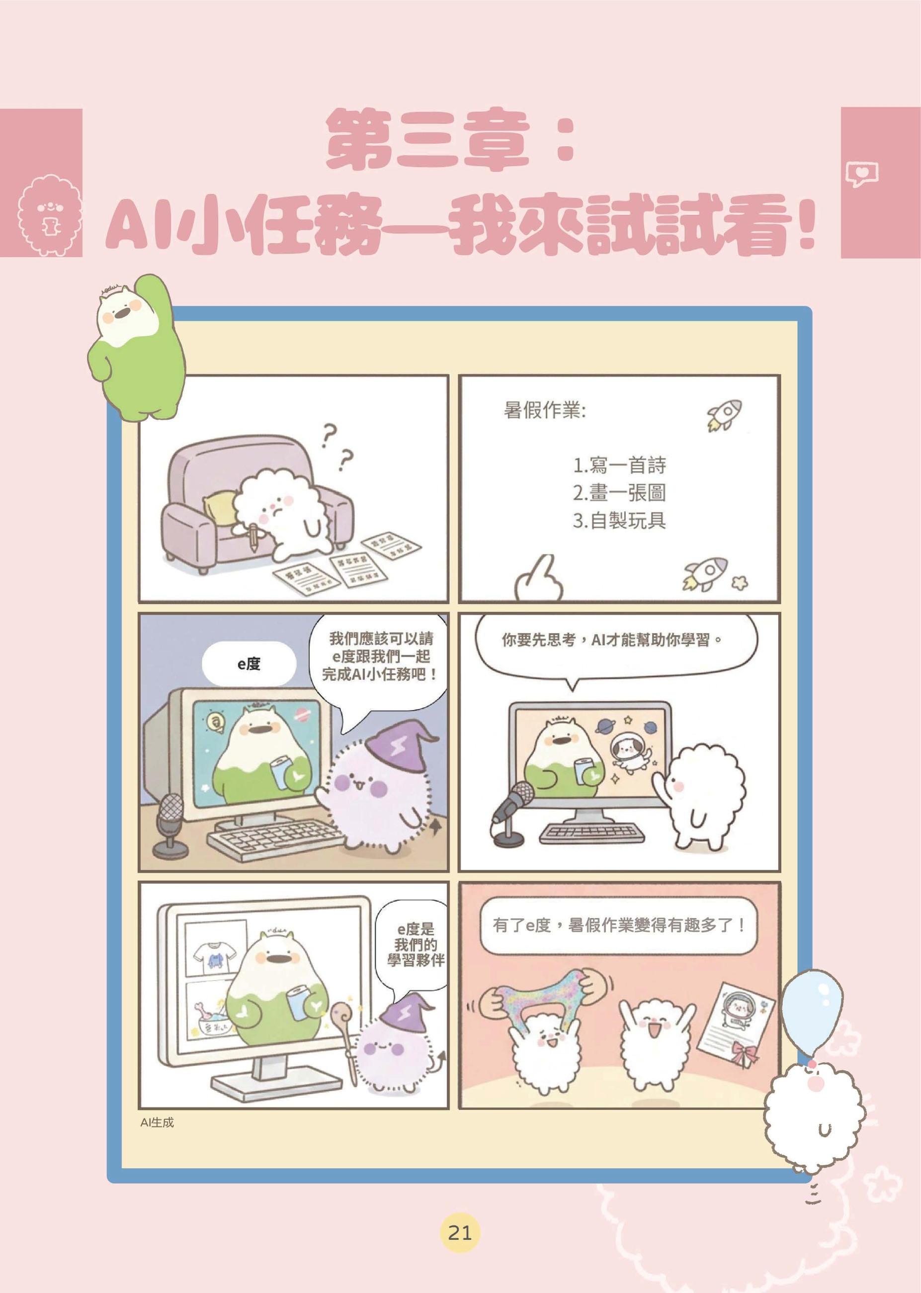 書中不斷提醒孩子,真正的創意與思考仍來自自己,AI只是輔助工具。