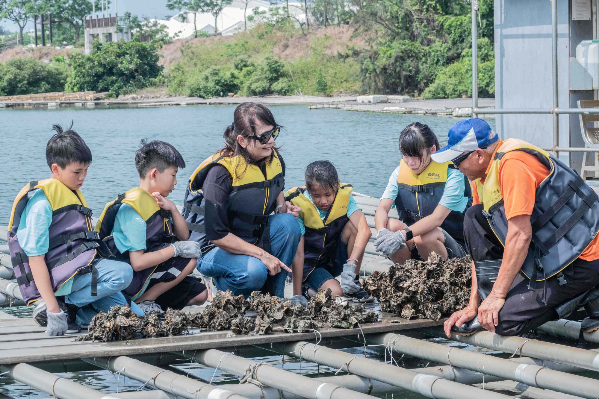 她不只講解,更親自陪同學生觀察牡蠣生長、辨識天敵、了解蚵農的工作日常,甚至與社區媽媽一起動手製作蚵仔包。