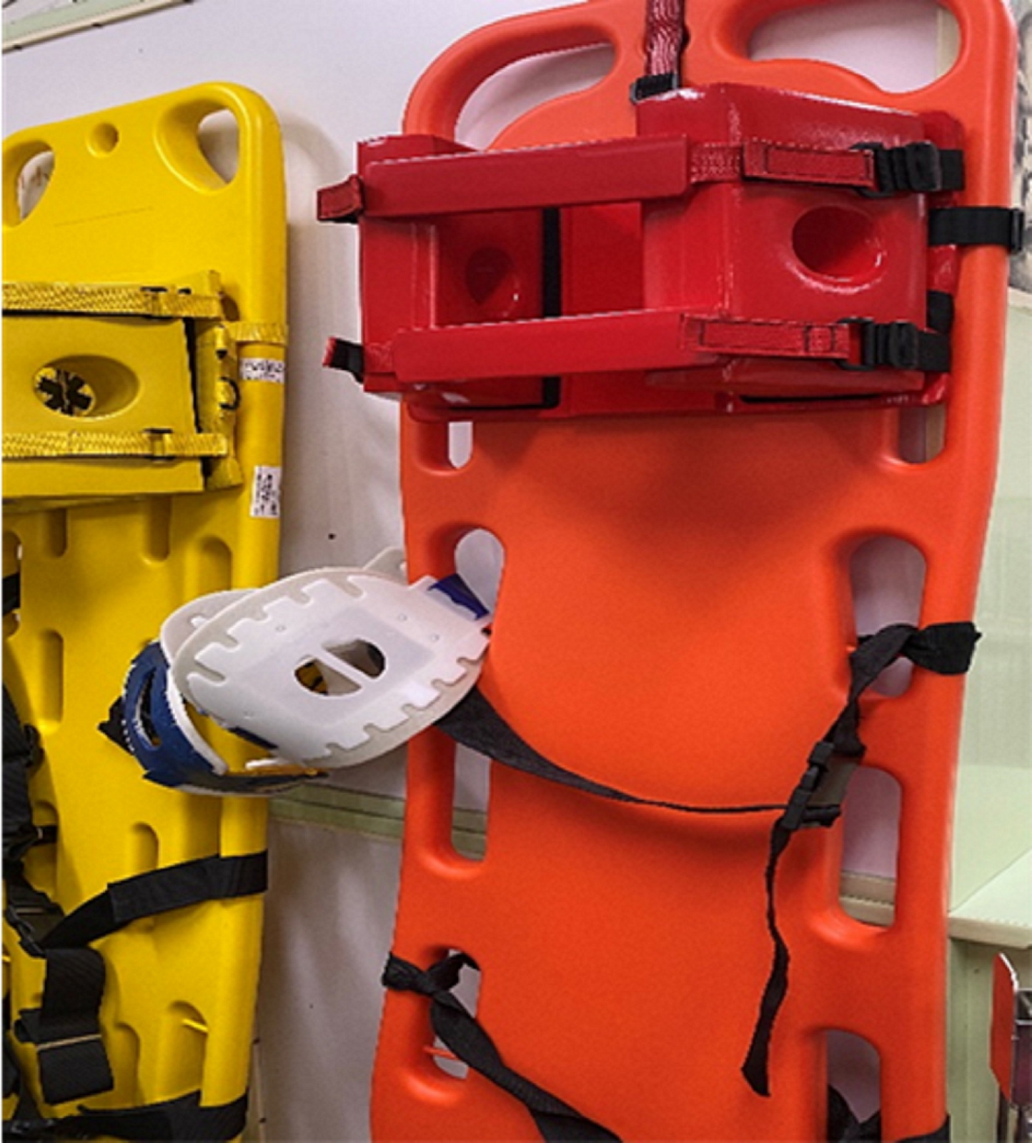 此外,學校也同步配置背脊板與頭部固定器,當學生疑似脊椎受傷時。