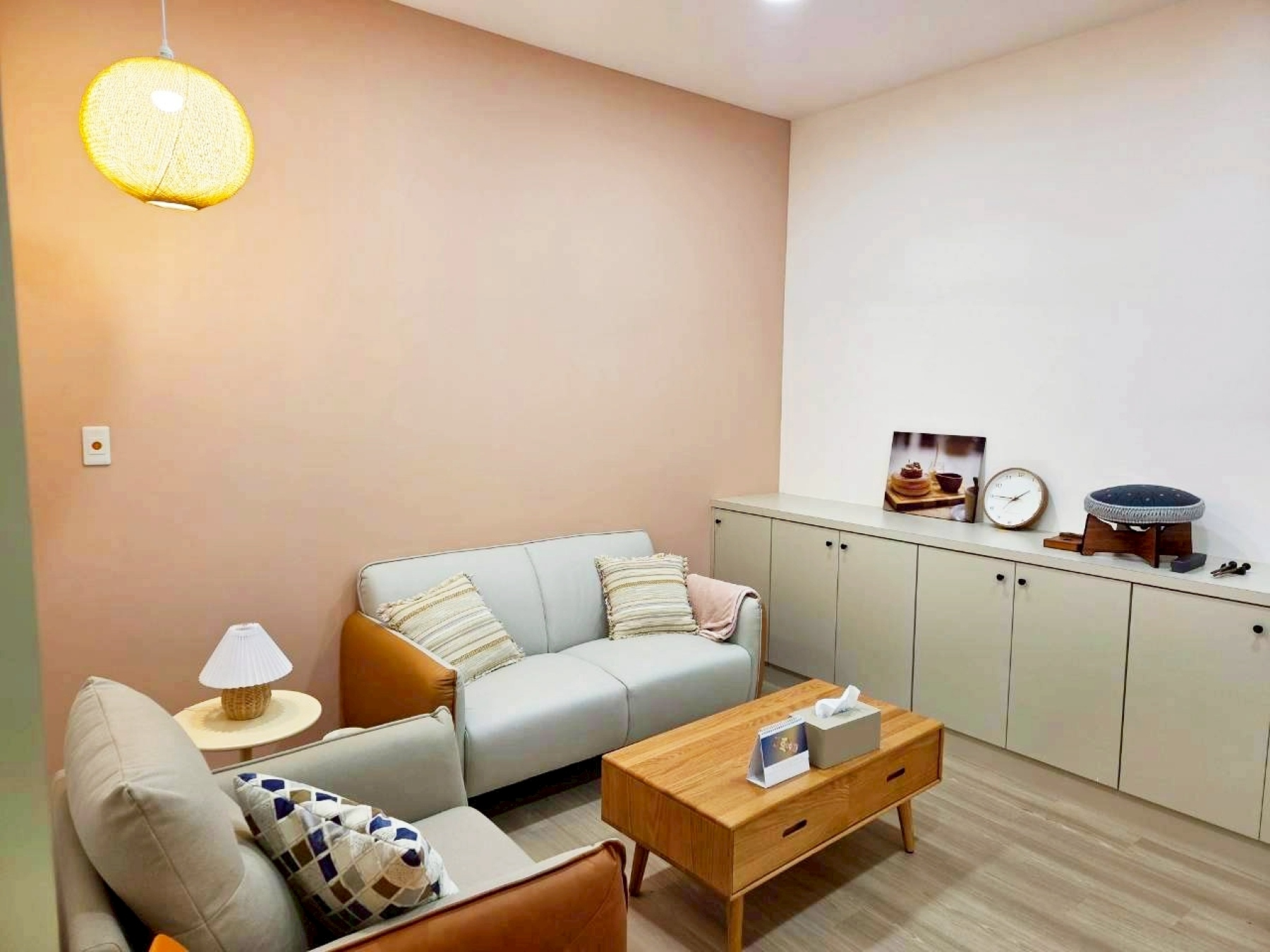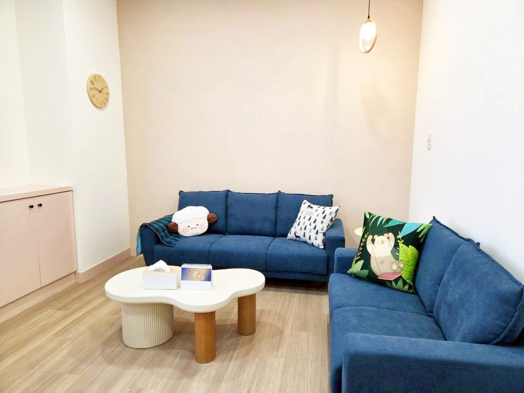 整體環境以輕柔色系為主軸,營造出安定、放鬆且具專業感的空間氛圍。