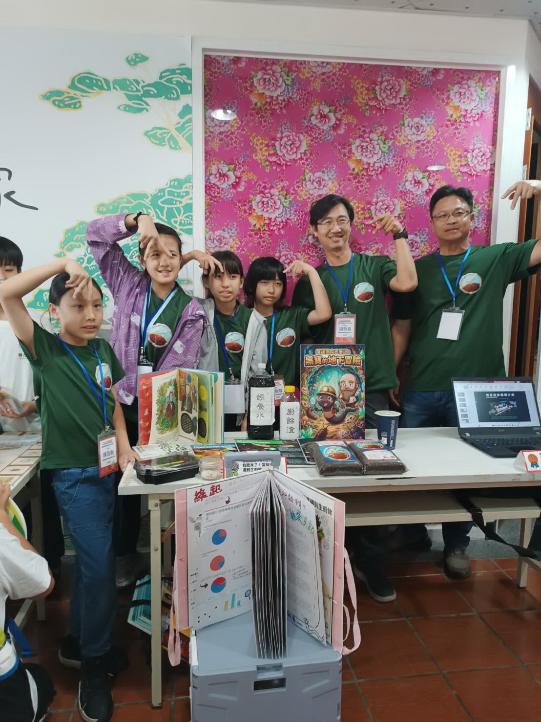 勝利國小以「我肥來了!當咖啡渣遇到生廚餘」利用有機廢棄物開發出具固碳效果的「蚓菜共生行動車」。