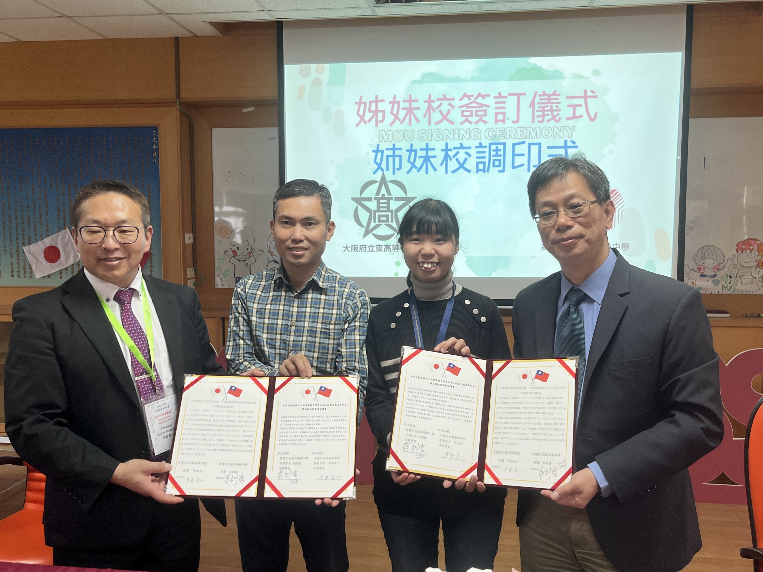 瑞祥高中今天(25日)與大阪東高校Osaka Prefectural Higashi High School簽約締結為姊妹校。由大阪東高校校長Keiichi Teramoto (寺本圭一)親自蒞臨瑞祥高中簽約,加強促進臺日兩校互訪交流,提升學生國際移動力與競爭力。