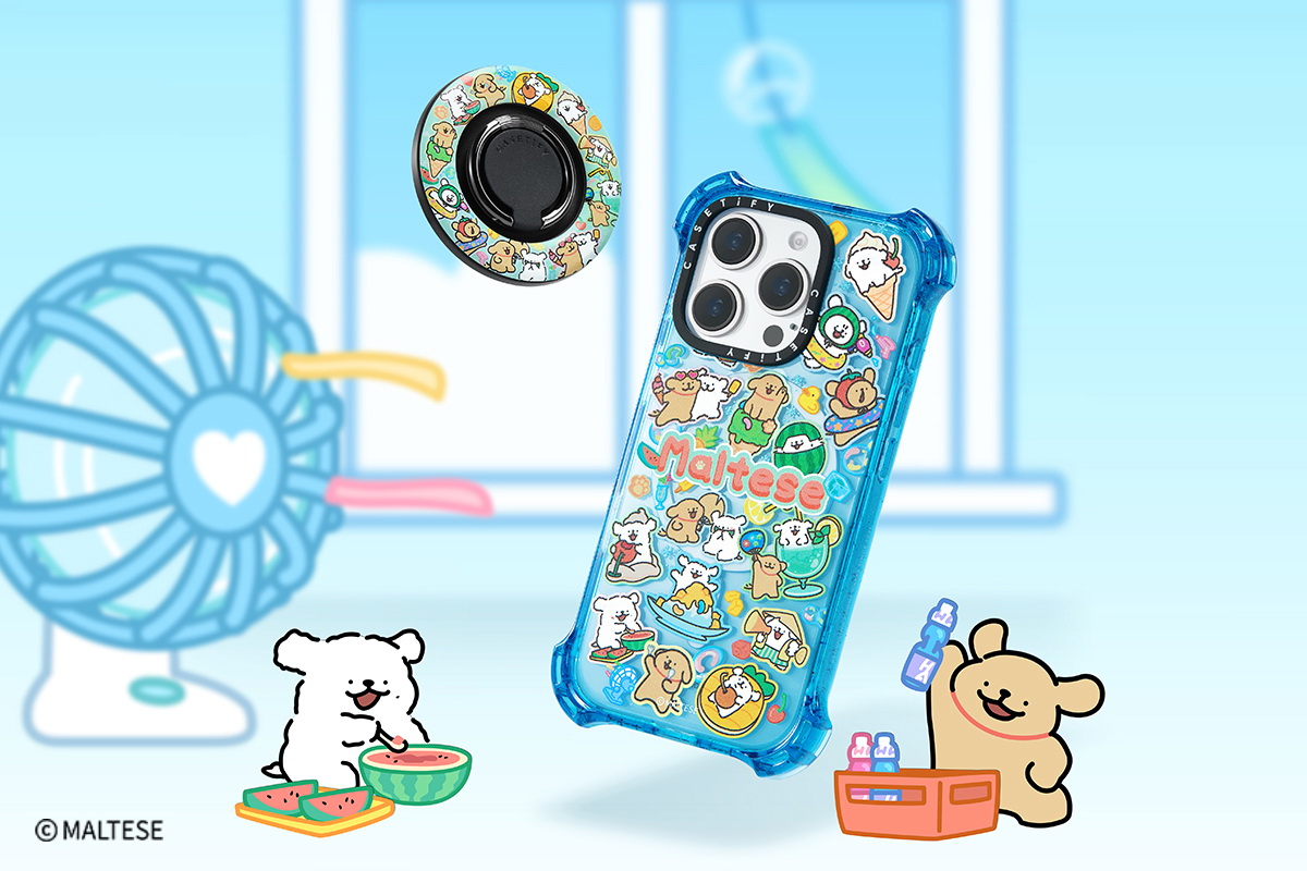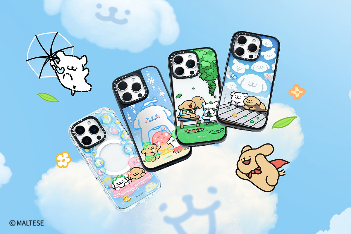 Maltese 線條小狗系列則將溫暖力量注入電子配件中,從泳池嬉戲、西瓜刨冰到綠藤乘涼等多款印花設計。