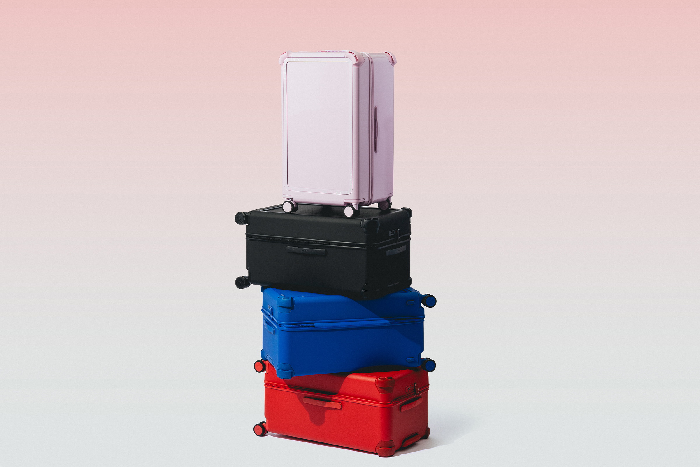 ( Bounce 行李箱延續 CASETiFY「Show your colors」精神,提供霧面黑、鈷藍色、櫻桃紅、及全新亮面粉色等多款配色 圖/品牌提供 )