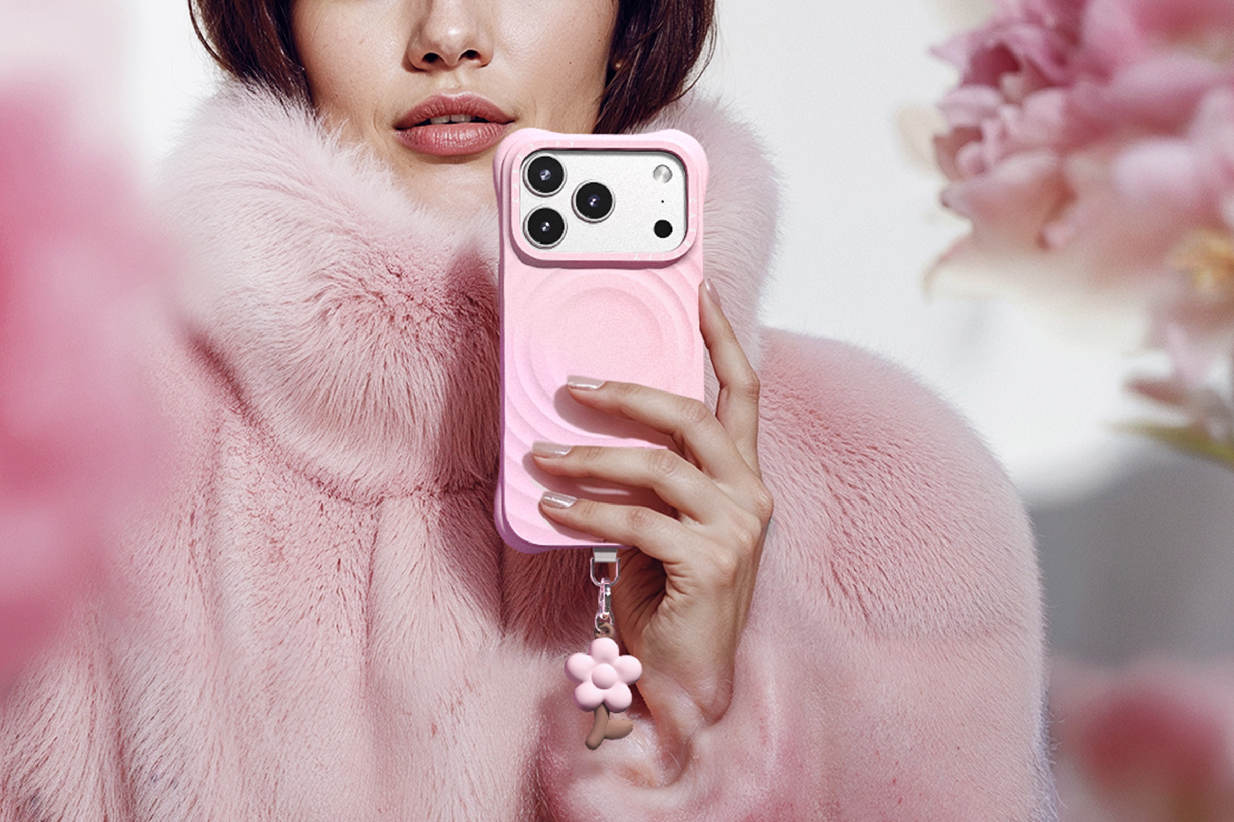 花朵手機吊飾還可搭配 CASETiFY 升級版手機殼側邊開孔設計一秒掛上。