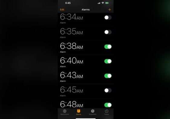 一名網友在國外論壇Reddit 發文表示,平常都會在iPhone設定好幾個早上時段鬧鐘,像是從6點38分設定到6點48分共5個鬧鐘,最後卻只有6點45分的鬧鐘響起,「我醒來發現我設好的鬧鐘都保持『設定』狀態」,卻無聲無息,也沒有刻意按掉鬧鐘或是做其他動作影響鬧鐘響起的時間,詢問眾人也會遇到這種情況嗎?