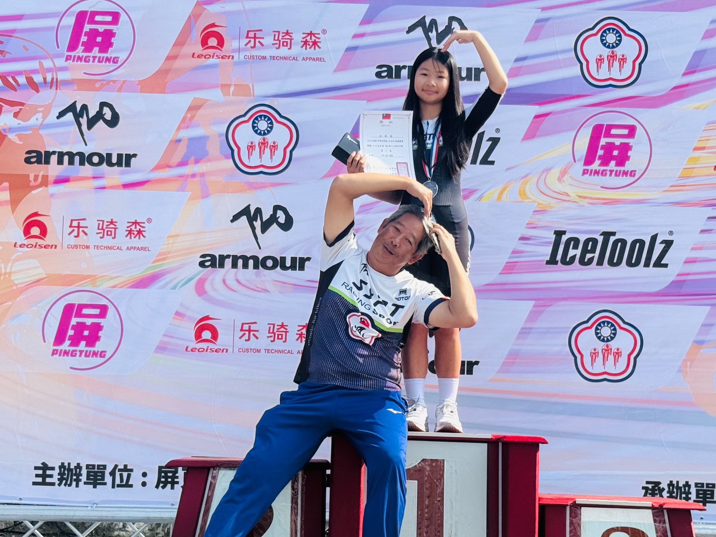 屏科實驗中學洪鼎立同學(國小五年級)在公路計時賽連續兩屆榮獲金牌。