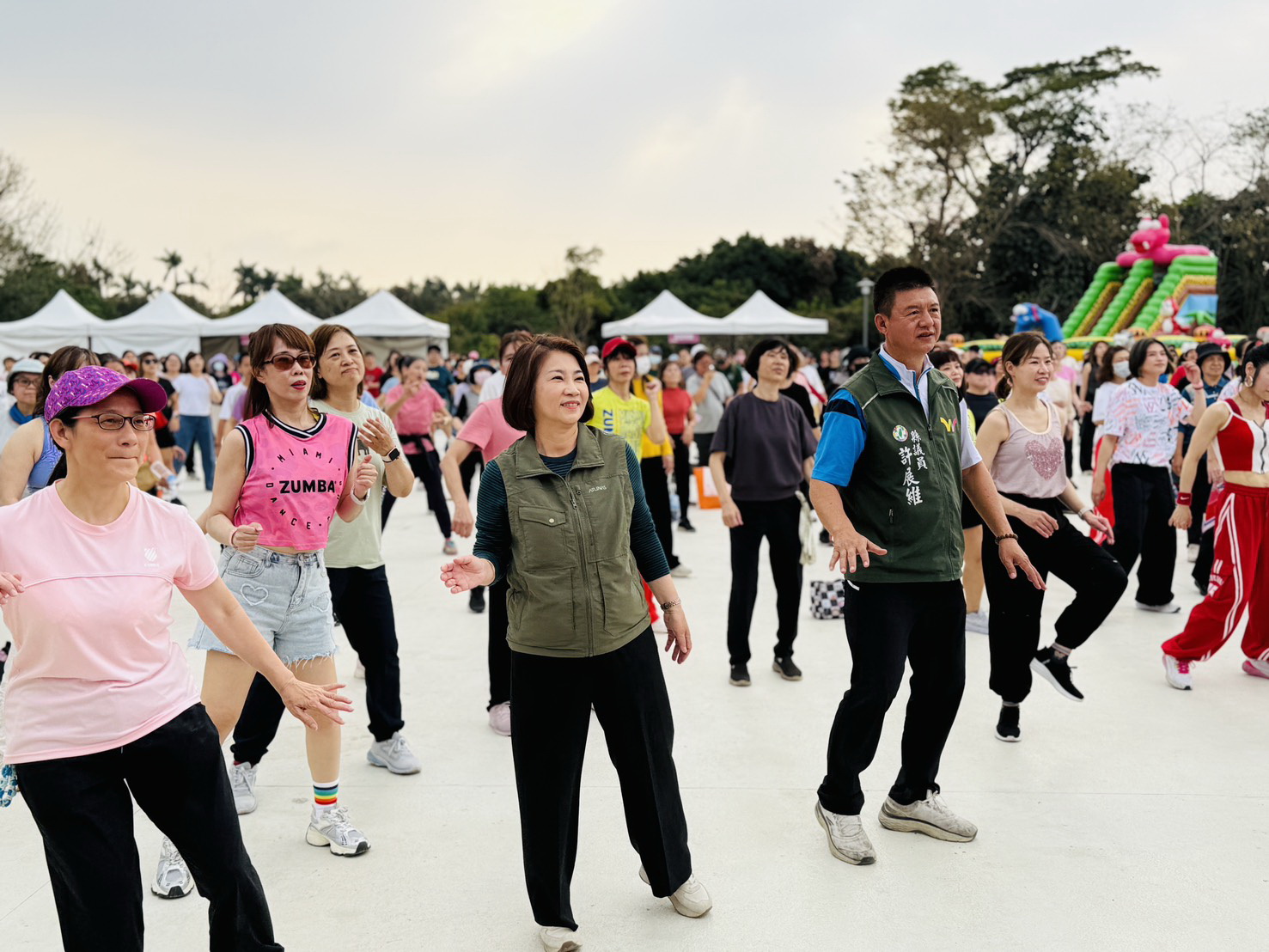 在潘若迪老師團隊帶領下,現場近2000名民眾一同跳有氧舞蹈,不僅能促進身體健康,也能讓心情更加愉快。